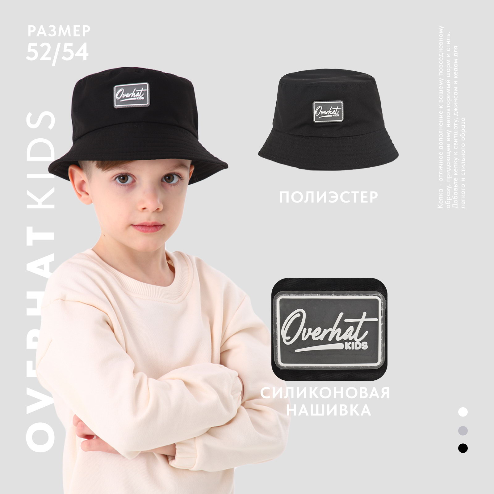 Панама детская для мальчика, цвет чёрный, р-р 52-54, 20x30x1 см., Overhat kids, Китай