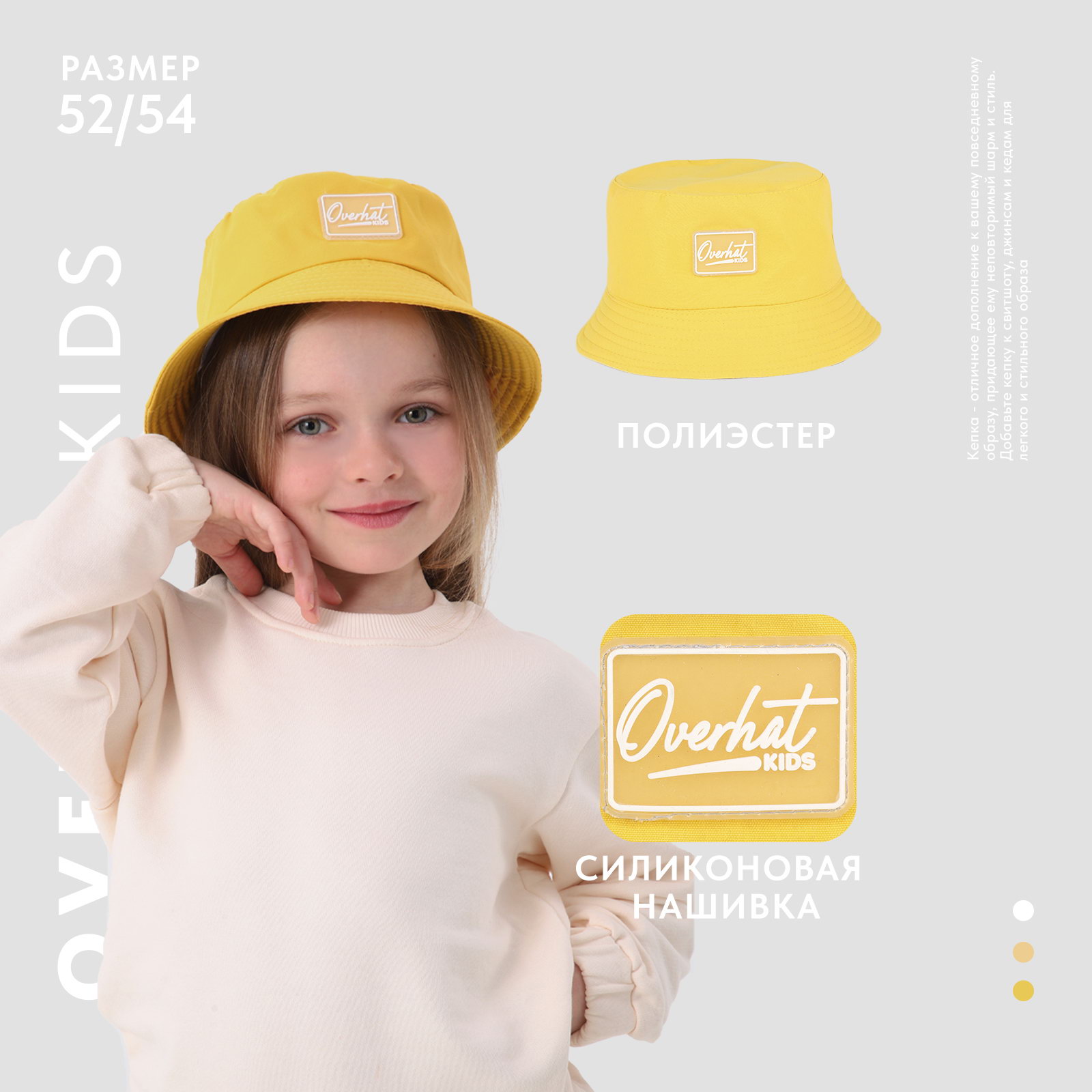 Панама детская для мальчика цвет жёлтый, р-р 52-54, 20x30x1 см., Overhat kids, Китай