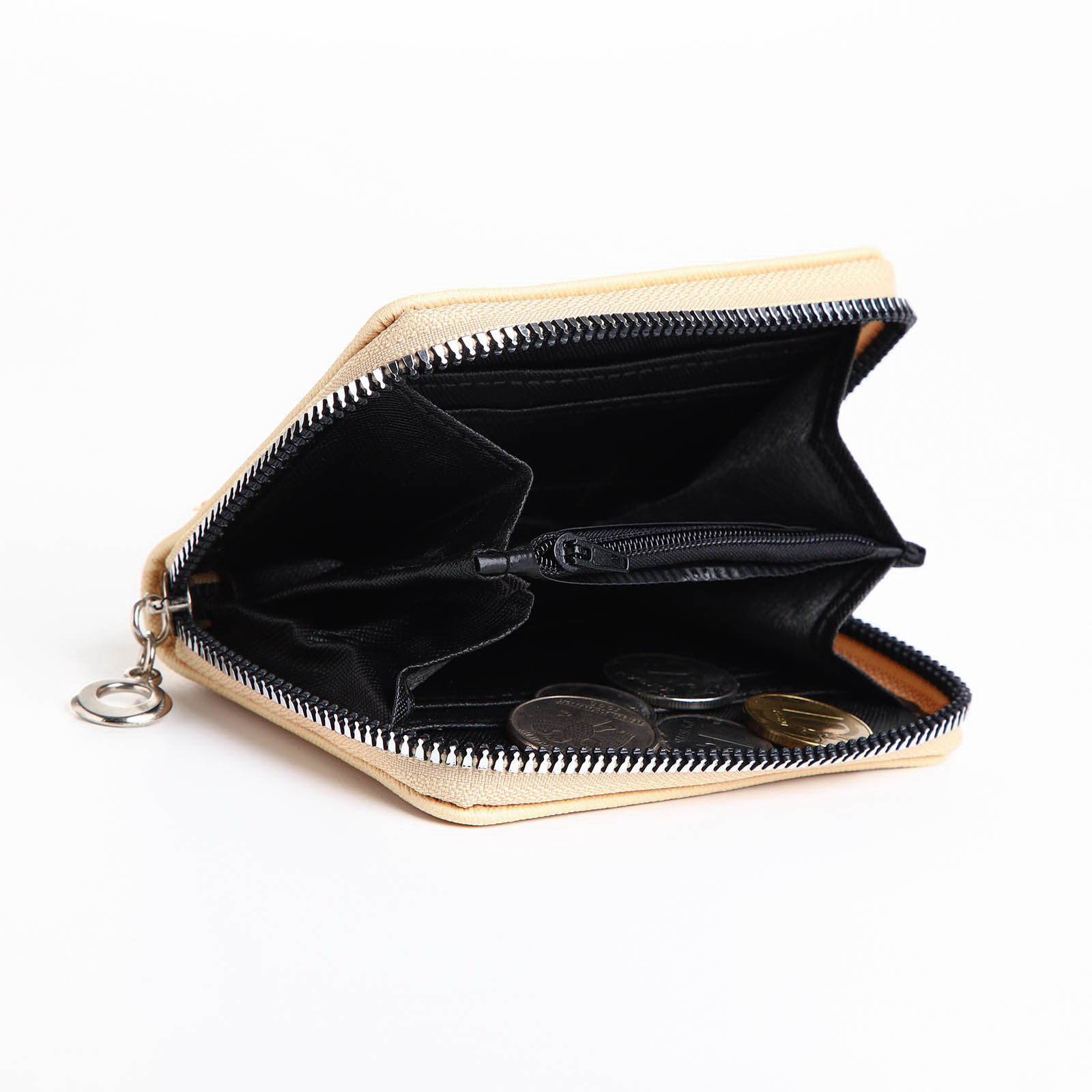 Кошелёк на молнии, отдел для карт, для монет, цвет бежевый, 2x11x8.5 см., Китай