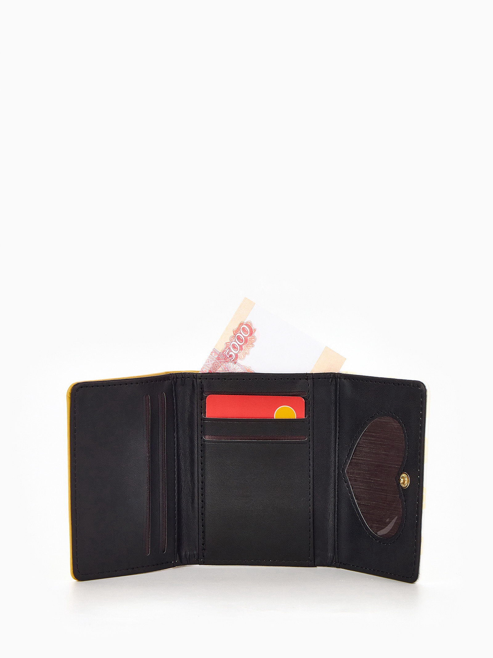 Размер упаковки: 8 x 2 x 11 см. Вид: Тройное сложение Количество отделений: 3 Изображение: Клетка Отдел для монет: Отсутствует Размер: Маленький см Рисунок: Да Рисунок: Да tnved: 4202321000 Вид застёжки: Кнопка Для кого: Для девочки Цвет: Жёлтый Желтый кошелек в клетку станет модным аксессуаром для юной леди. Компактная модель тройного сложения помещается в ладошку. Особенности