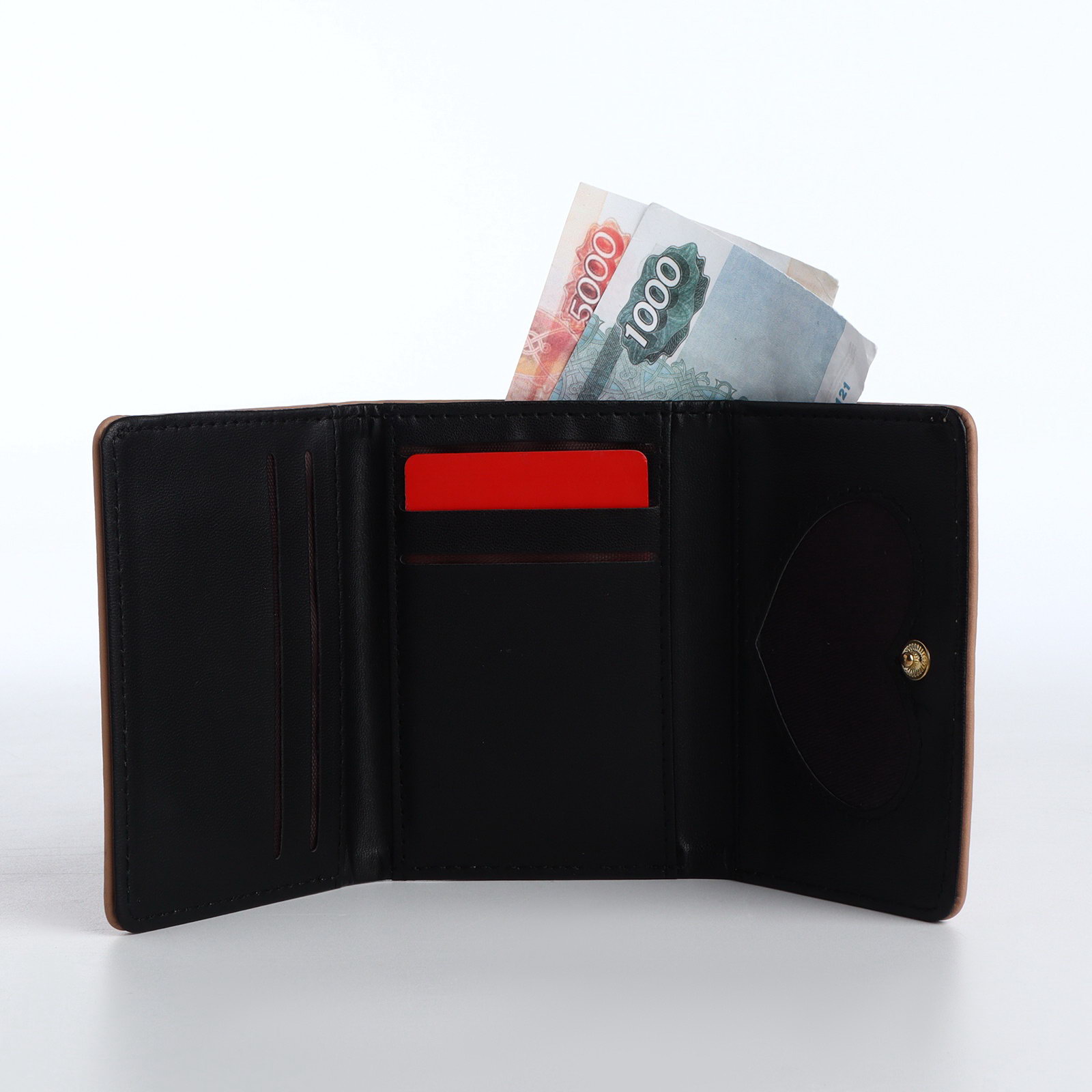 Размер упаковки: 7 x 2 x 10.5 см. Для кого: Для девочки Вид застёжки: Кнопка Цвет: Бежевый Вид: Тройное сложение Количество отделений: 2 Изображение: Бант Размер: Маленький см Отдел для монет: Отсутствует Тематика праздника: 8 Марта Рисунок: Да tnved: 4202321000 Этот маленький бежевый кошелёк на кнопке станет первым и самым любимым аксессуаром для девочки. Мягкая искусственная кожа приятна на ощупь, а изящный бант и нежный цвет создают по-настоящему праздничное настроение. Удобный формат тройного сложения легко помещается в маленькую ладошку или карман школьной формы. Особенности