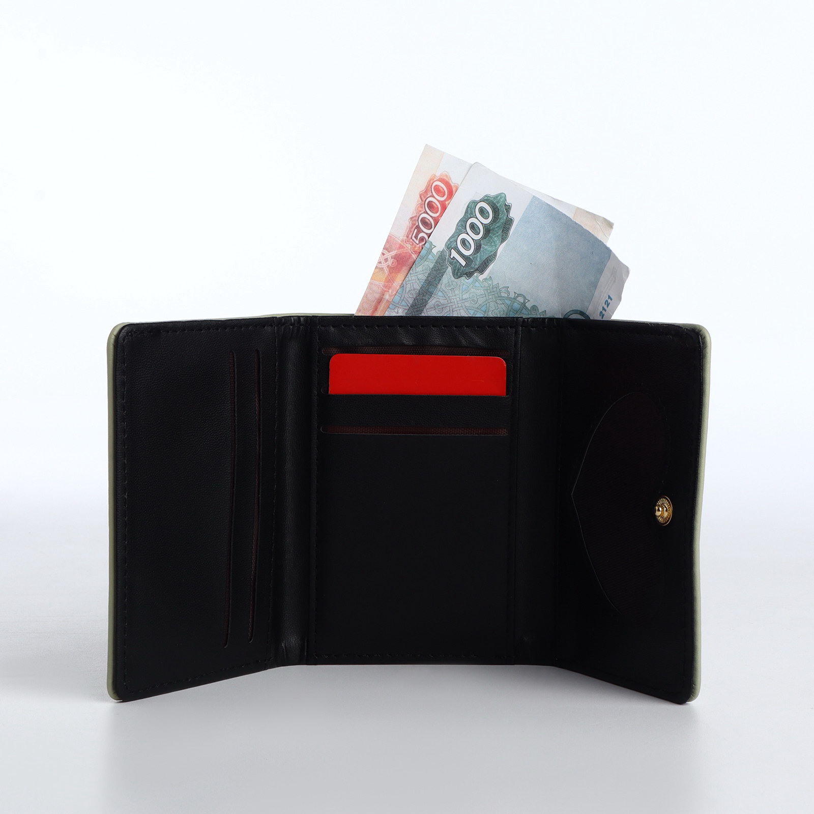 Размер упаковки: 7 x 2 x 10.5 см. Цвет: Зелёный Вид застёжки: Кнопка Для кого: Для девочки Вид: Тройное сложение Количество отделений: 2 Изображение: Бант Размер: Маленький см Отдел для монет: Отсутствует Тематика праздника: 8 Марта Рисунок: Да tnved: 4202321000 Этот маленький зелёный кошелёк на кнопке станет первым и самым любимым аксессуаром для девочки. Его тройное сложение надёжно хранит купюры, а два отделения помогут разделить карманные деньги на "сейчас" и "на мечту". Нежный бант и весенний цвет делают его идеальным подарком к 8 Марта, который будет радовать каждый день. Особенности