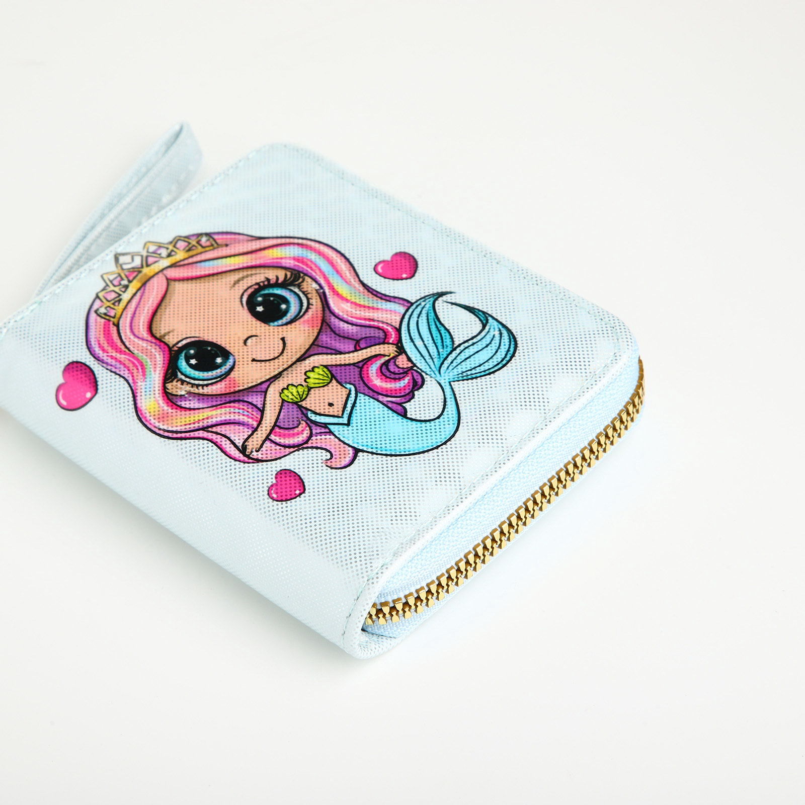 Кошелёк "Русалка", для девочки, на молнии, голубой, 2x11x8.5 см., Китай