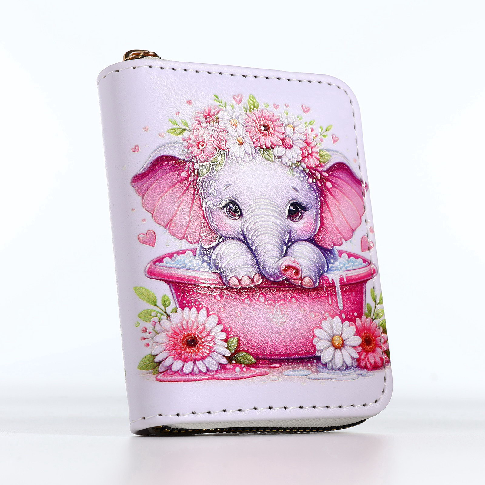 Кошелёк на молнии "Слоник", белый, 2.5x8.5x11 см., Выбражулька, Китай