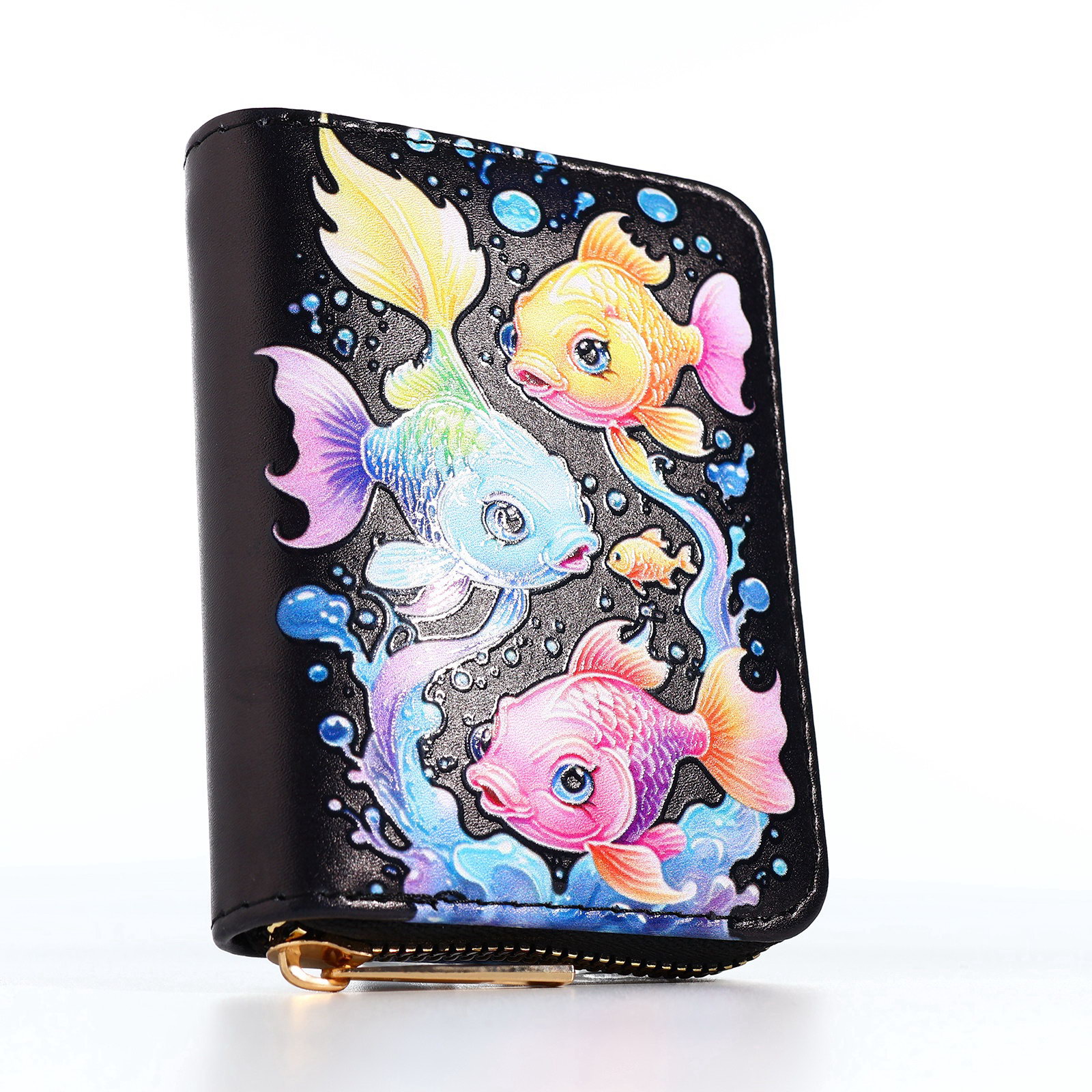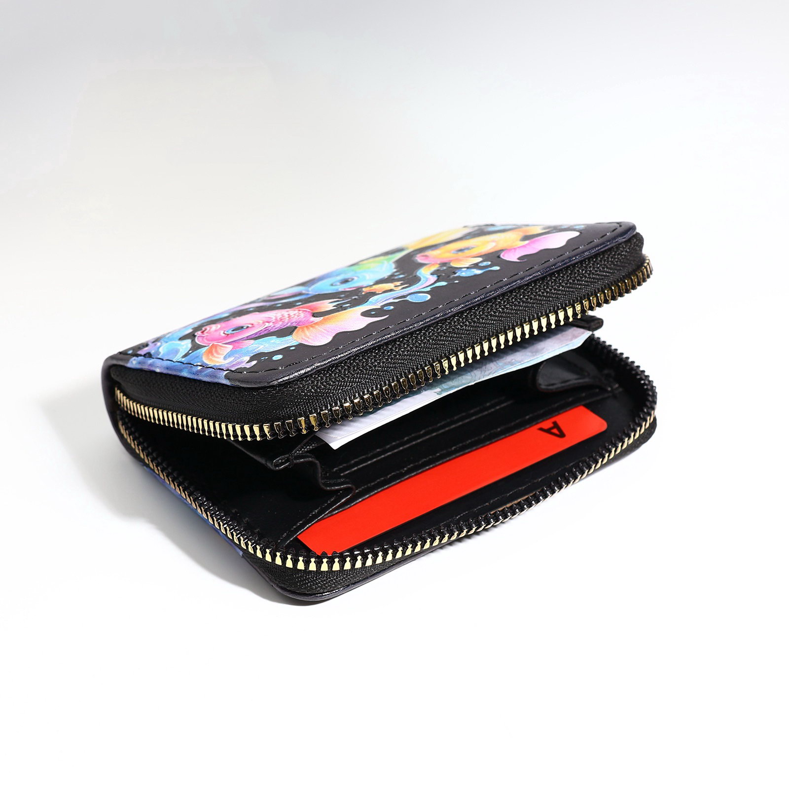 Кошелёк на молнии "Рыбы", чёрный, 2.5x8.5x11 см., Выбражулька, Китай