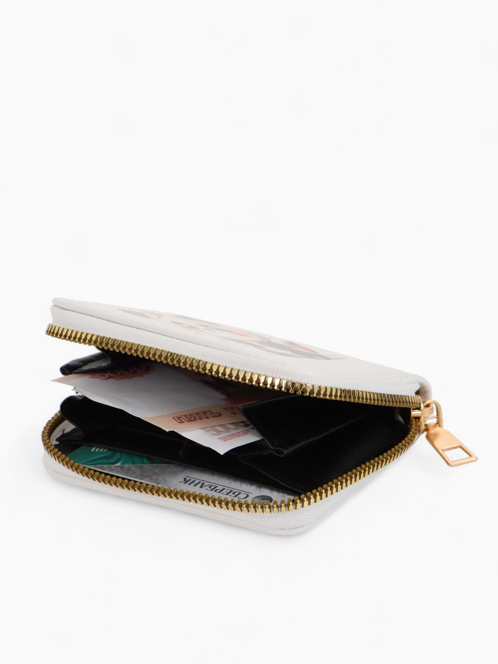 Кошелёк на молнии 8.5x2.5x10.5 см, с принтом, белый, 2.5x8.5x10.5 см., Выбражулька, Китай