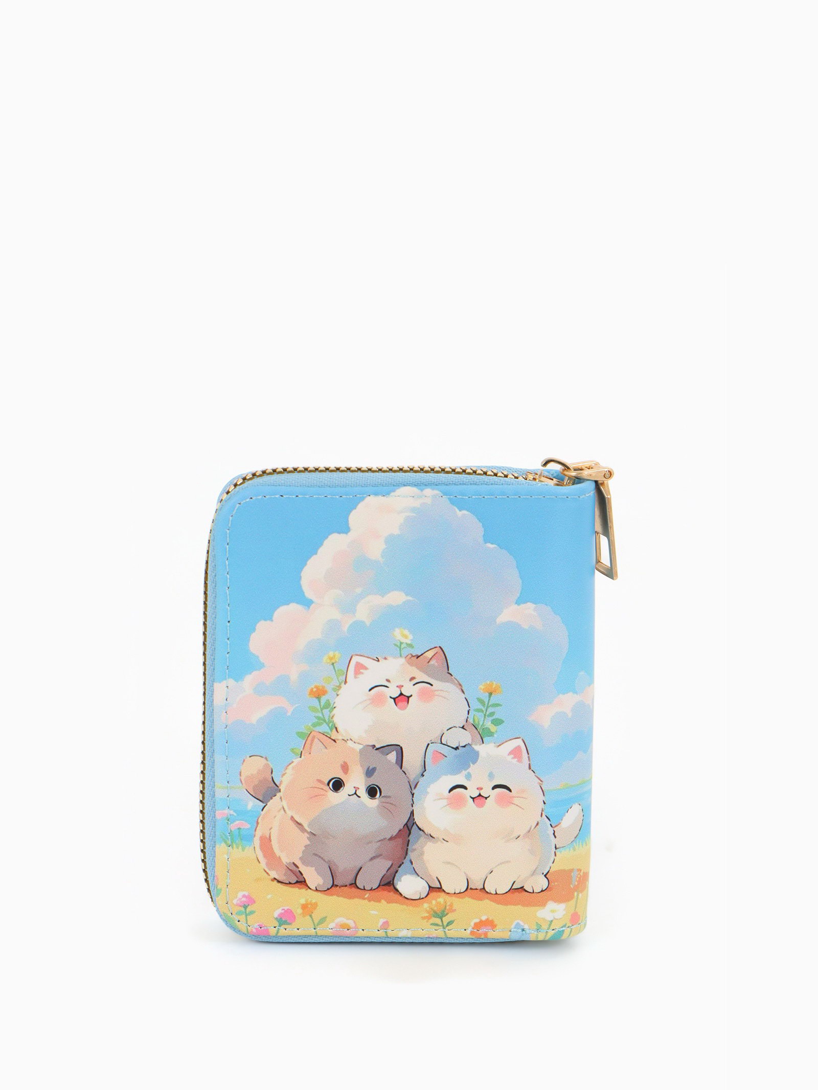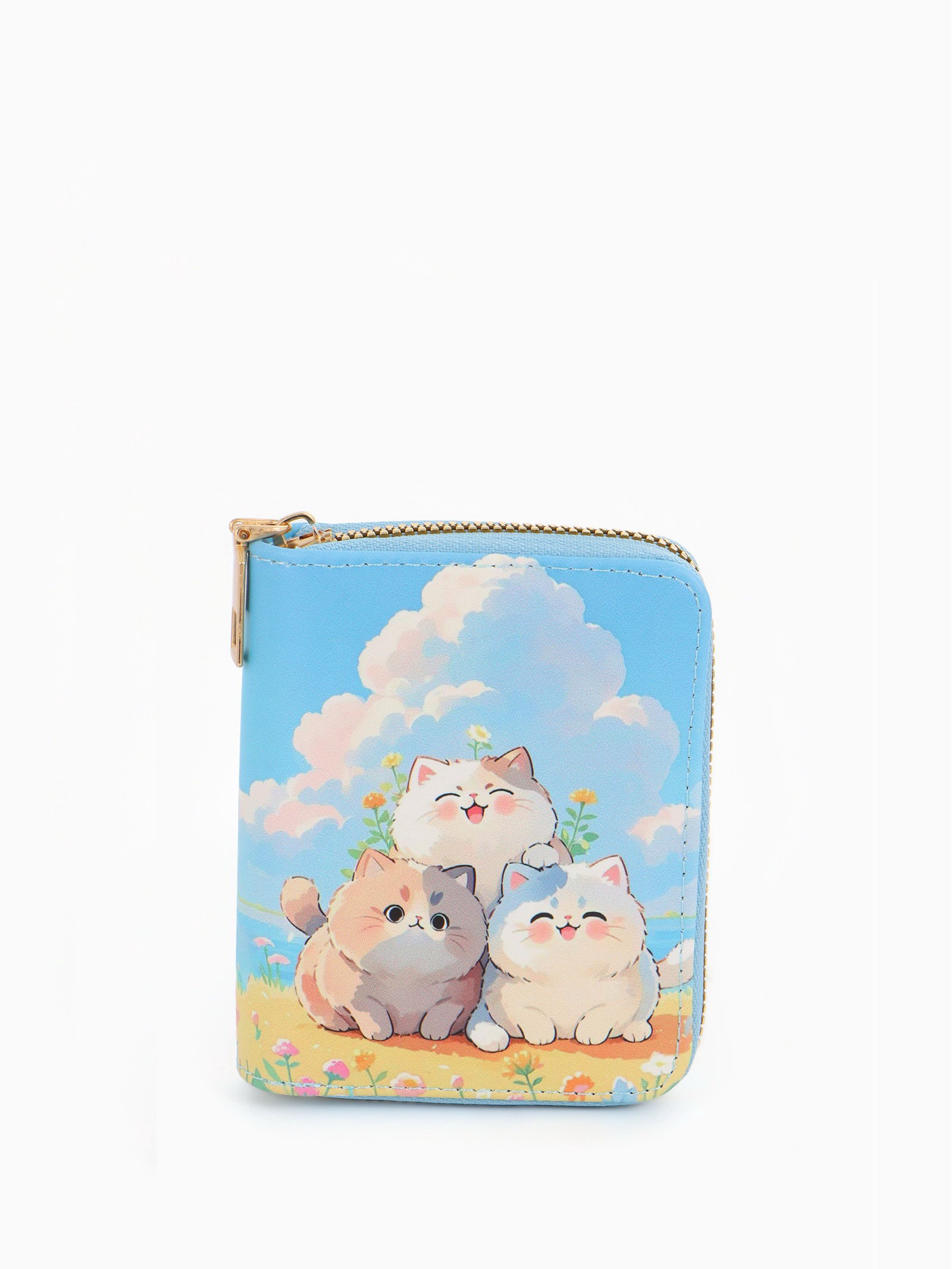 Кошелёк на молнии 8.5x2.5x10.5 см, с принтом, голубой, 2.5x8.5x10.5 см., Выбражулька, Китай