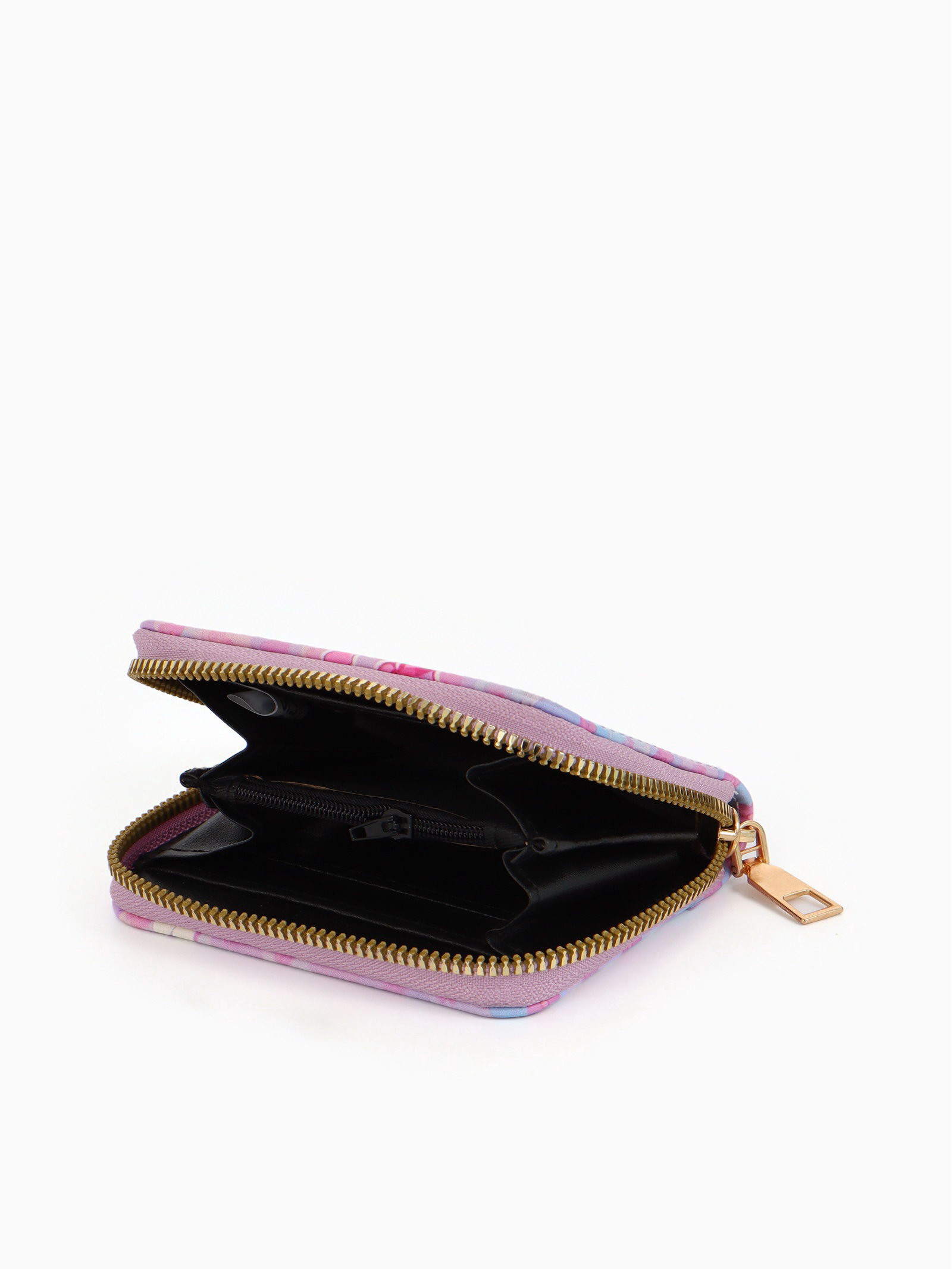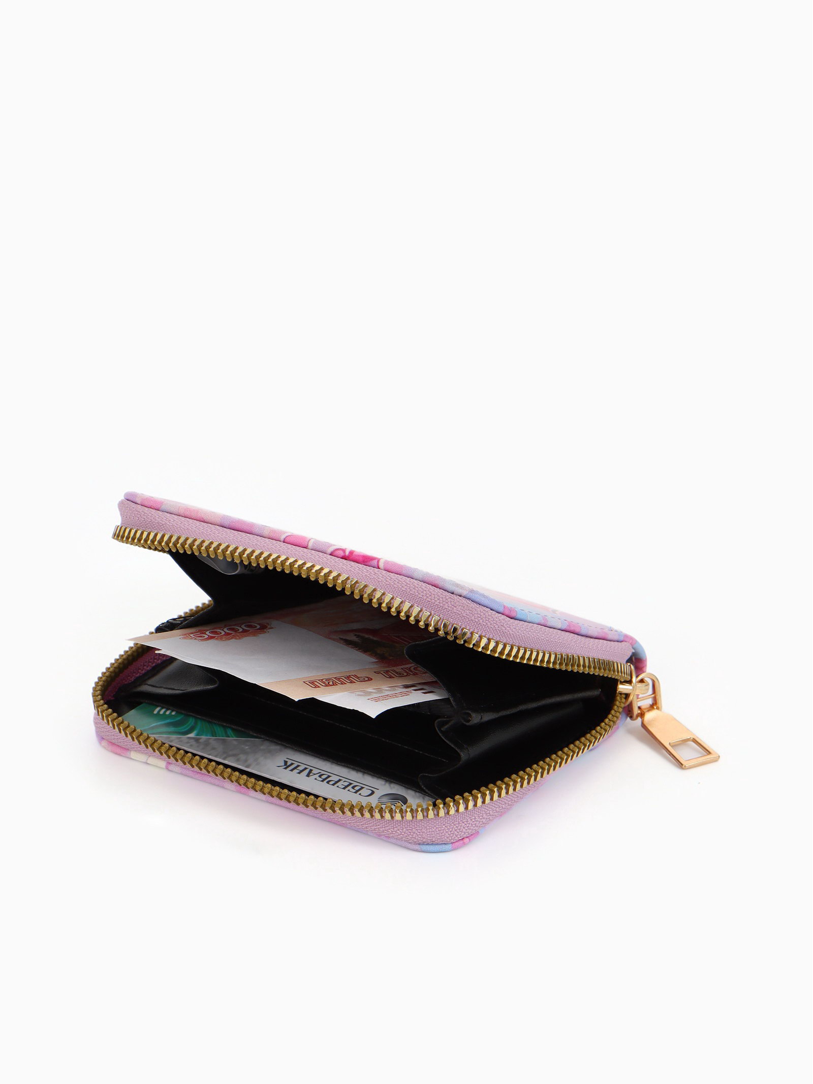 Кошелёк на молнии 8.5x2.5x10.5 см, с принтом, розовый/сиреневый, 2.5x8.5x10.5 см., Выбражулька, Китай