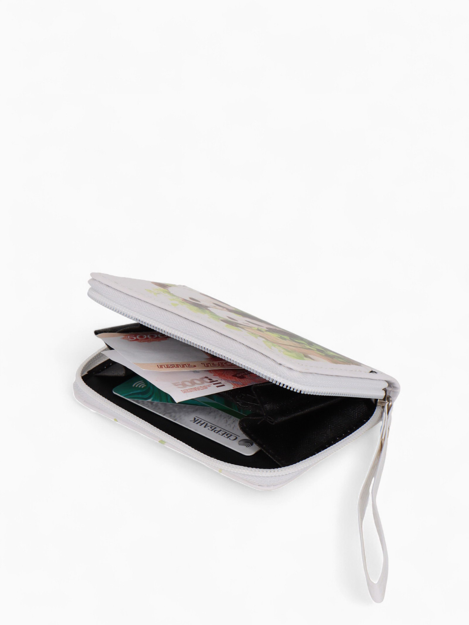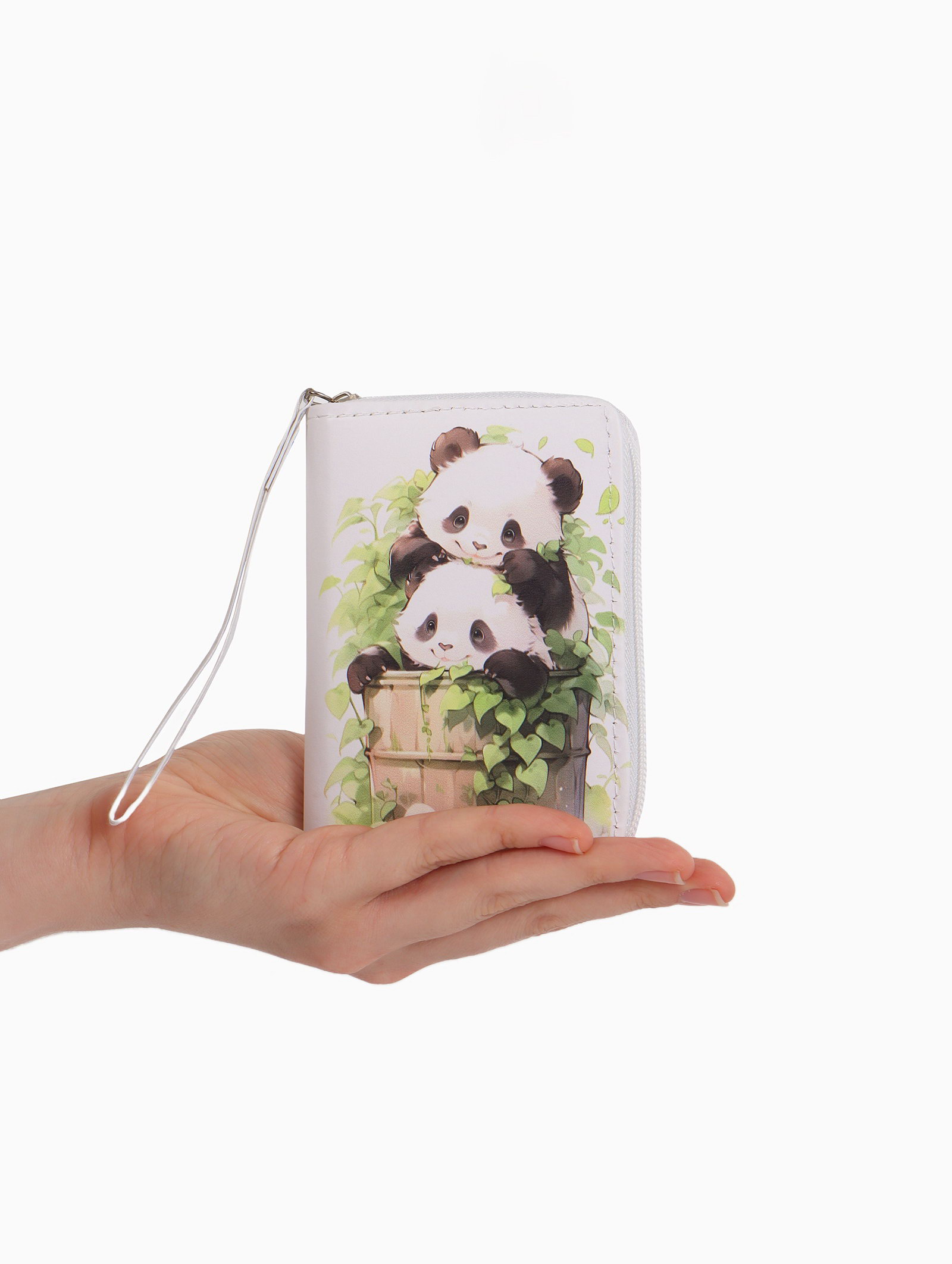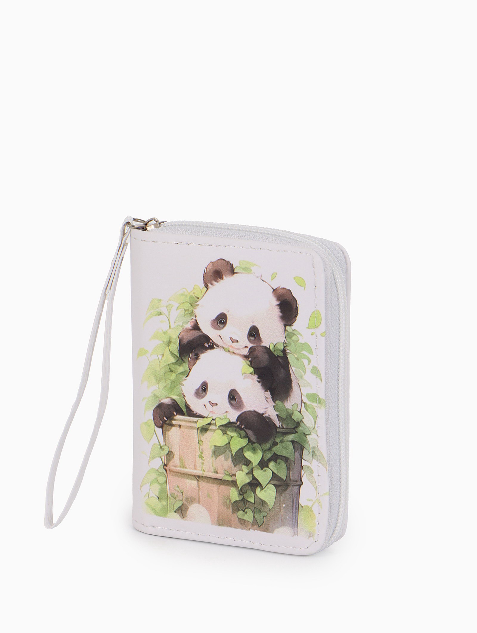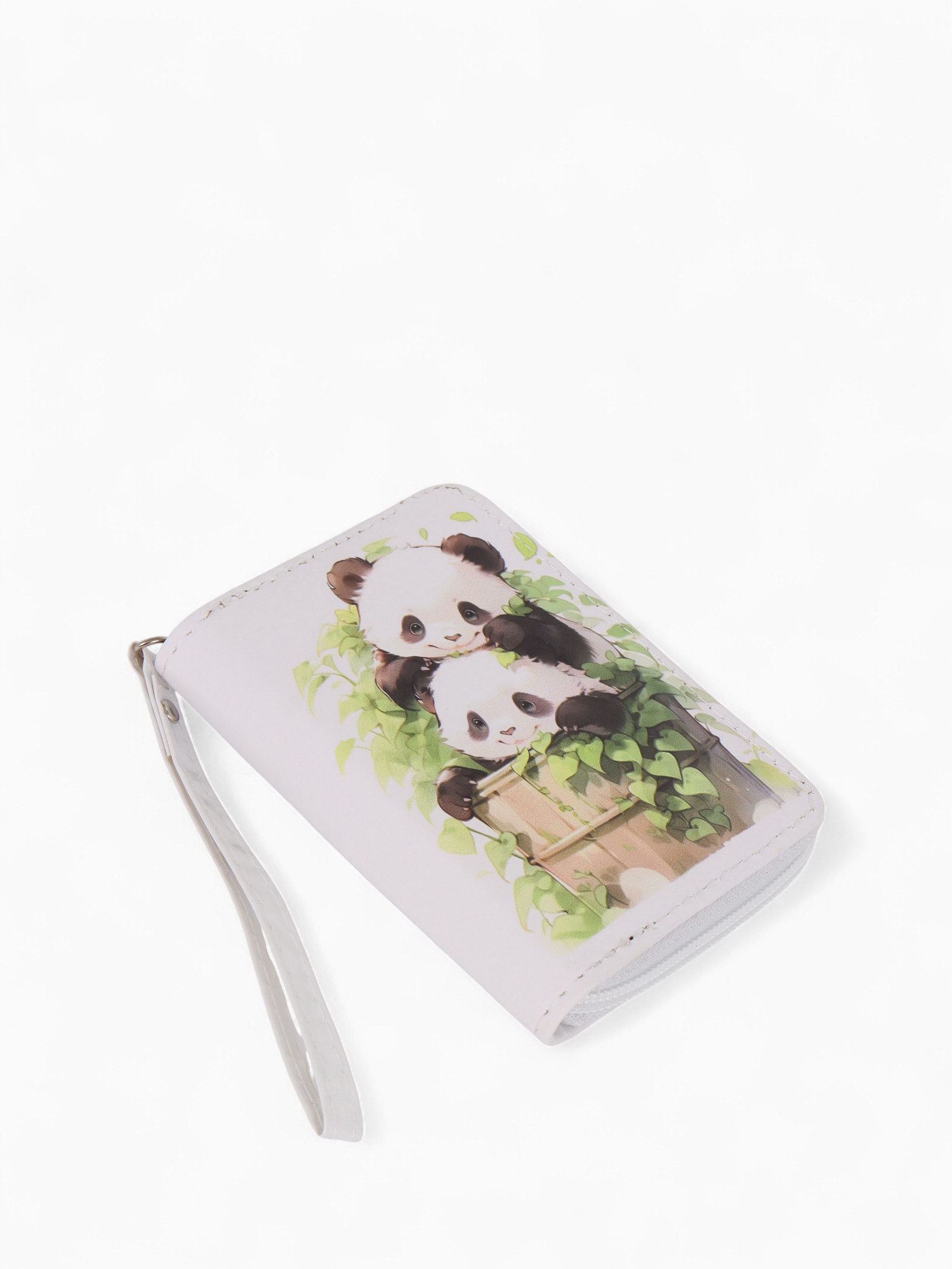 Кошелёк на молнии "Пандочки", 12x1.5x9 см, с принтом, белый, 1.5x12x9 см., Выбражулька, Китай