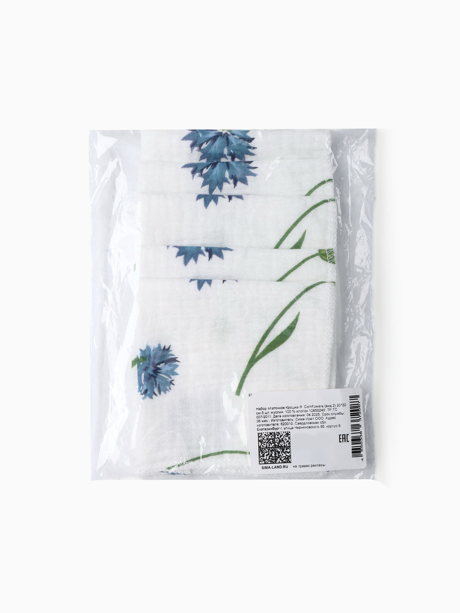 Набор платочков Cornflowers вид 2, 20x20 см-5 шт., муслин, хлопок 100%, Крошка Я, Россия