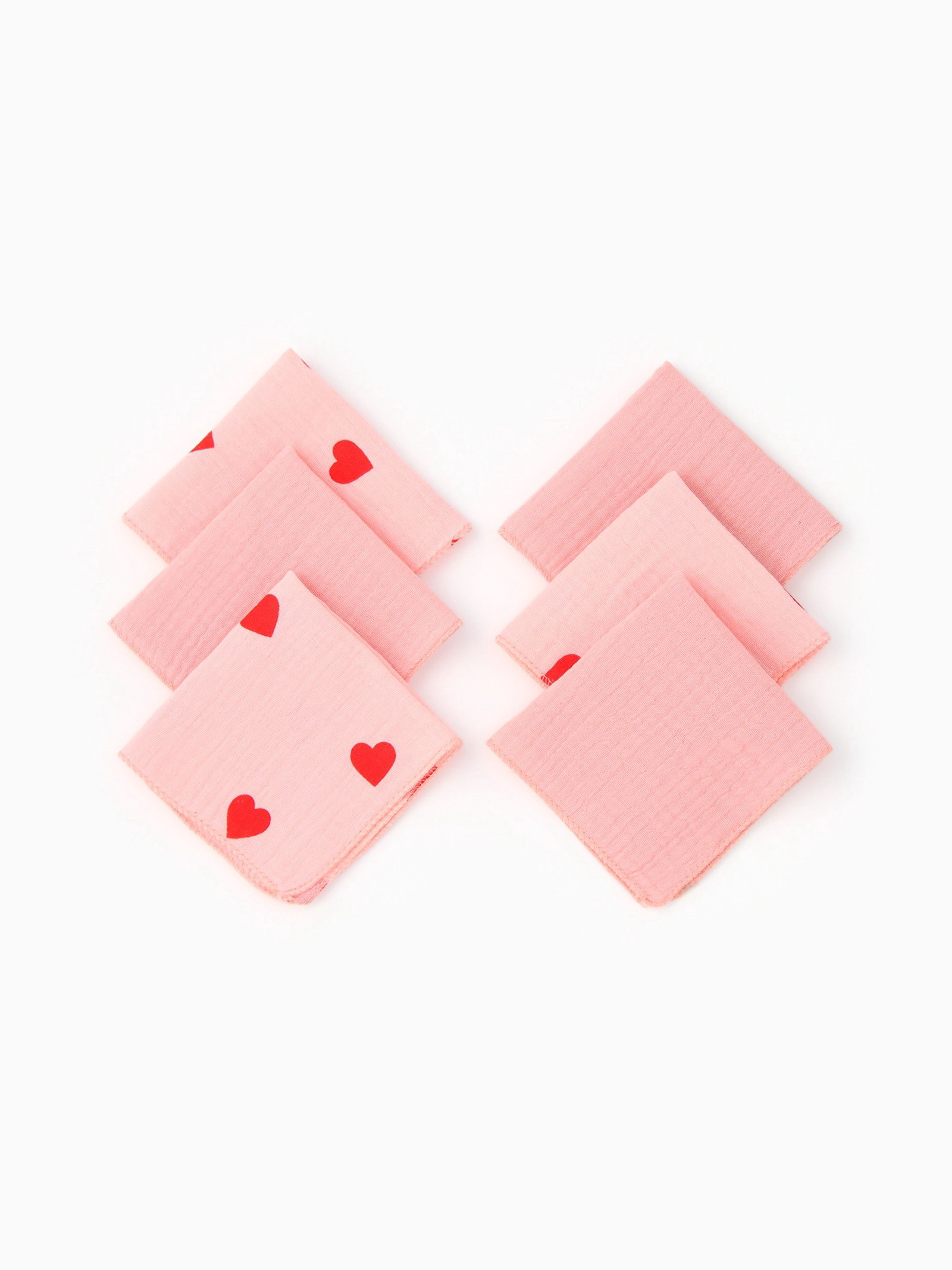 Набор платочков Pink Heart 20*20 см - 6 шт, муслин, 100 % хлопок, Крошка Я, Россия