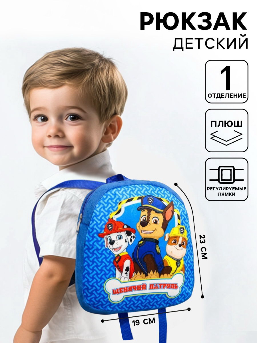 Рюкзак детский плюшевый на молнии, 24.5 см x 7 см x 24.5 см "Лучшие друзья" Щенячий патруль, 7x24.5x24.5 см., Paw Patrol, Китай