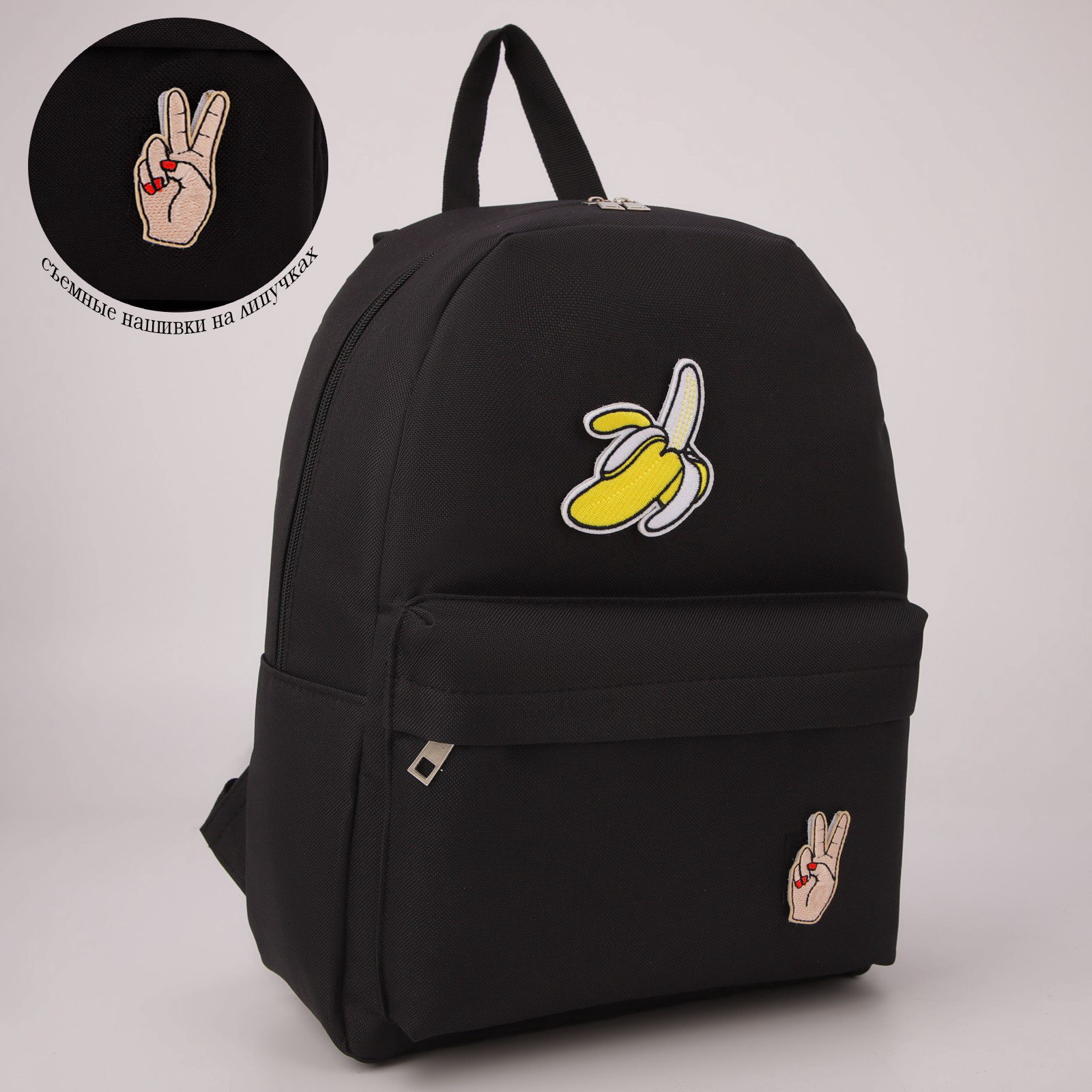 Рюкзак школьный текстильный "Банан", 37 x 33 x 13 см, с липучками, чёрный, 33x13x37 см., NAZAMOK KIDS, Китай