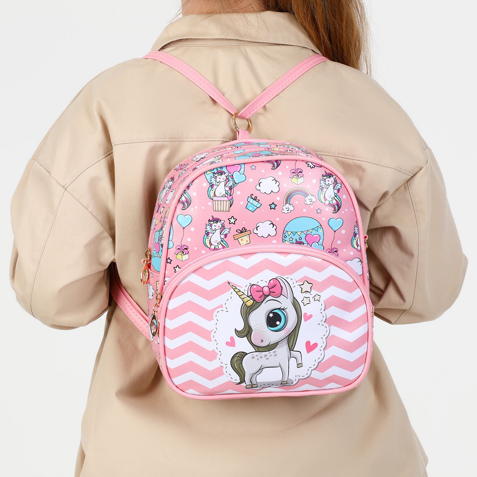 Рюкзак детский на молнии, размер 20x8x23 см, розовый, 8x20x23 см., Выбражулька, Китай