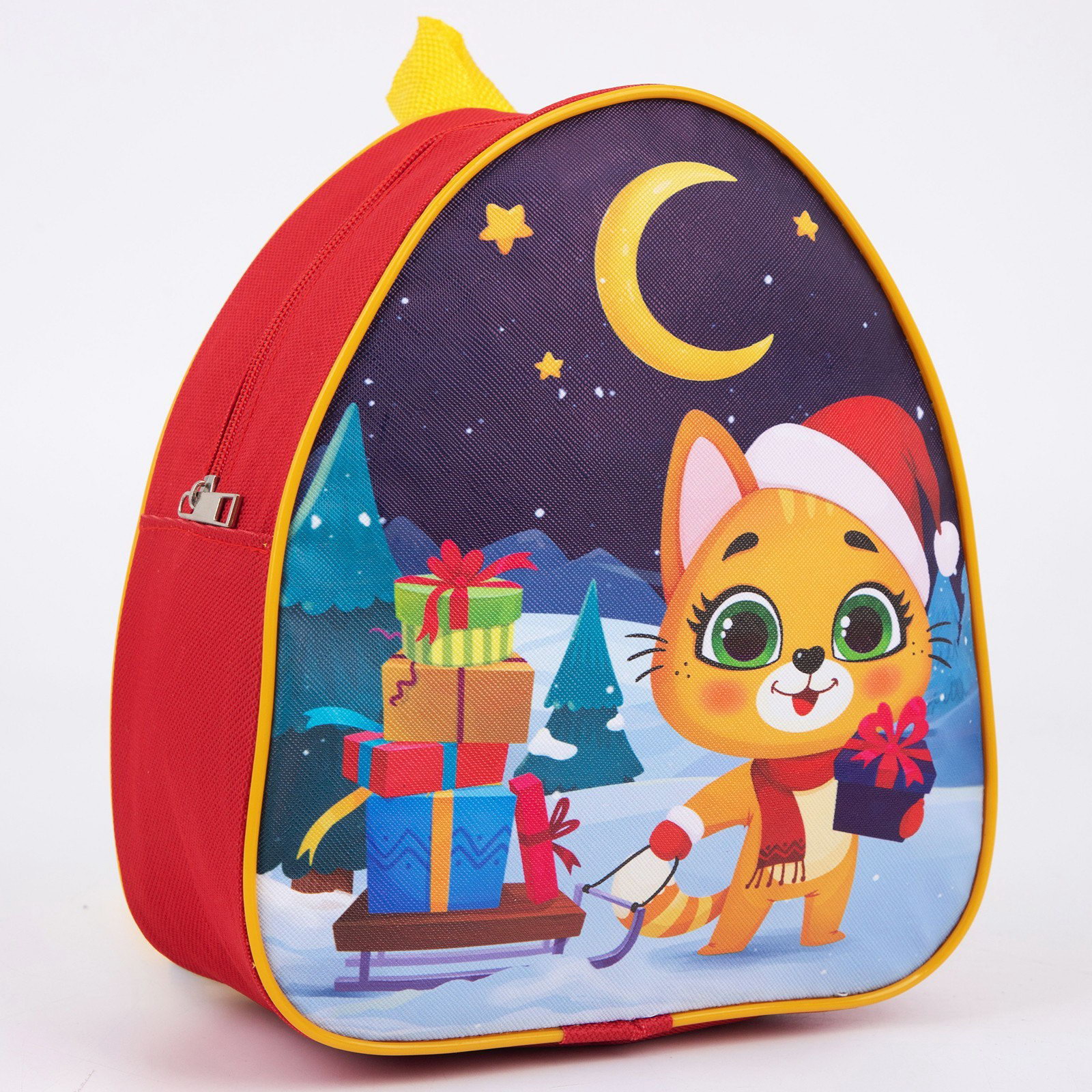 Рюкзак детский новогодний "Котик с подарками", 10x20x23 см., NAZAMOK KIDS, Китай