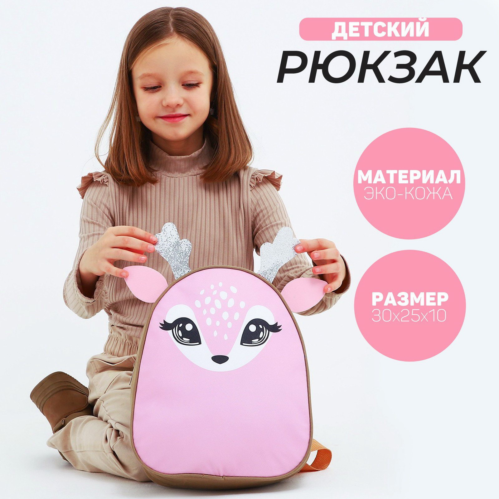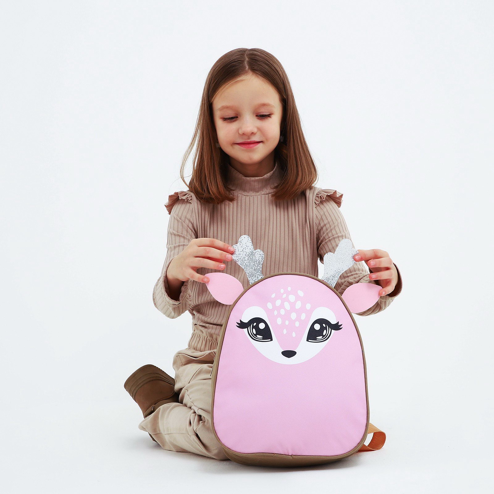 Рюкзак детский из искусственной кожи "Олененок", 30x25 см, розовый, 30x10x25 см., NAZAMOK KIDS, Китай