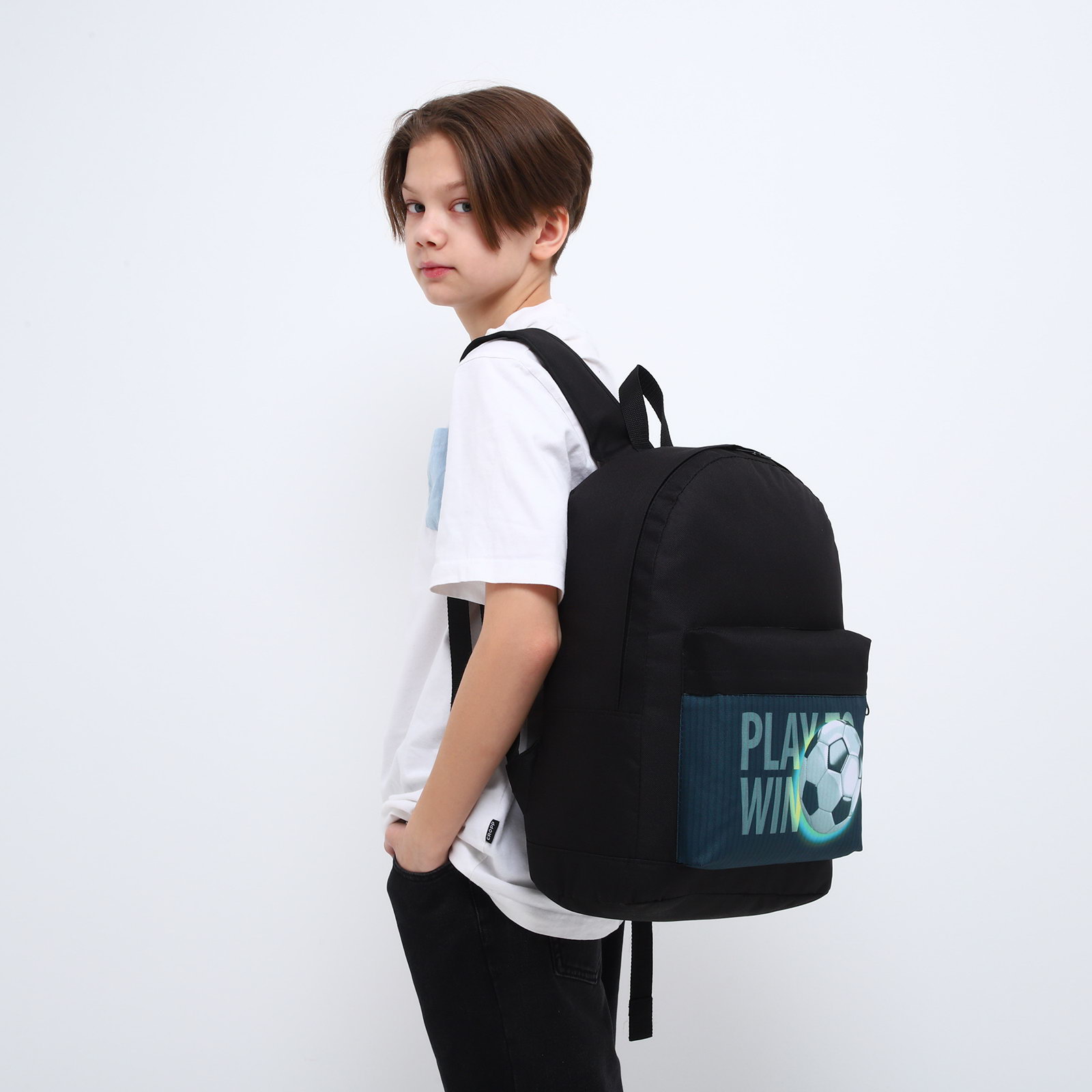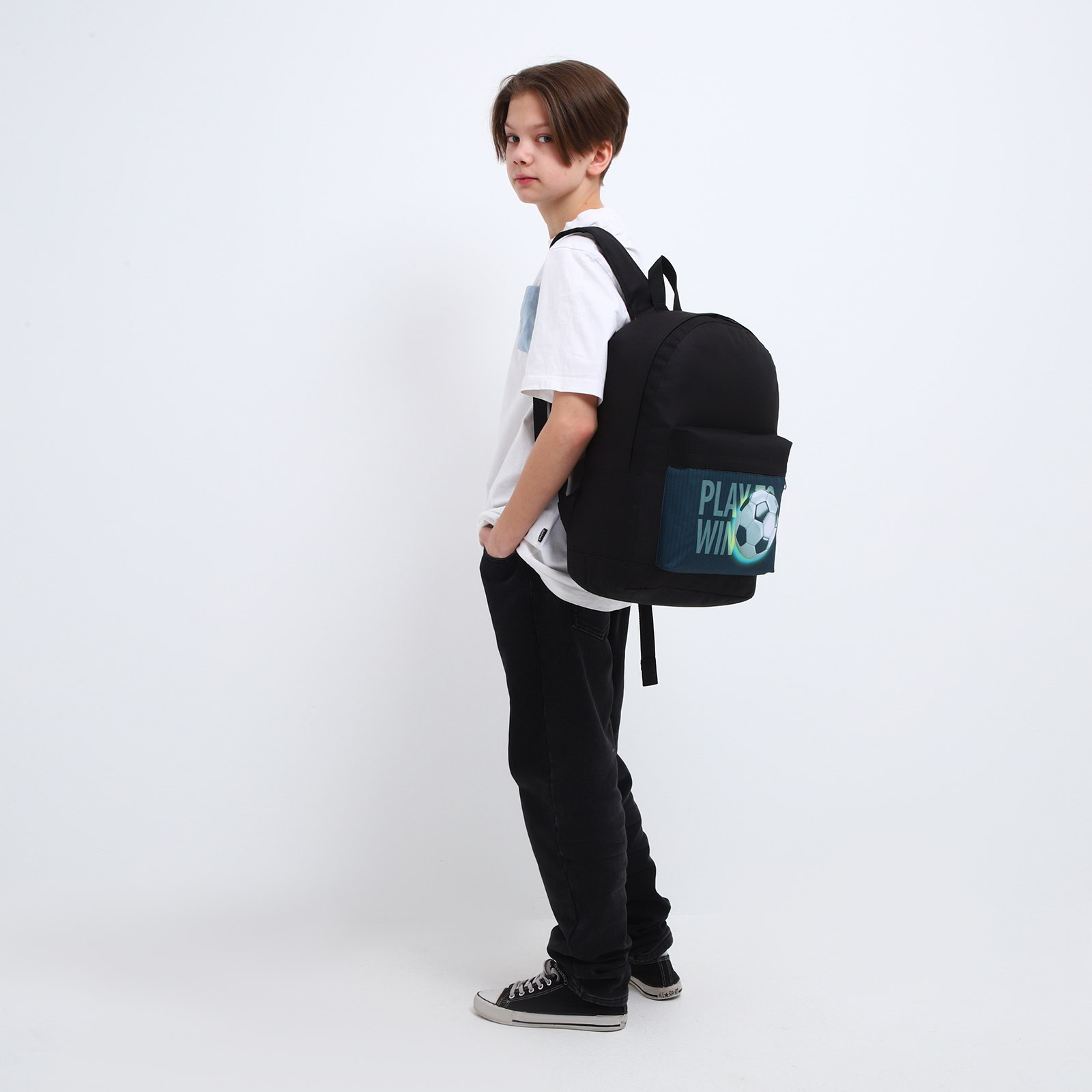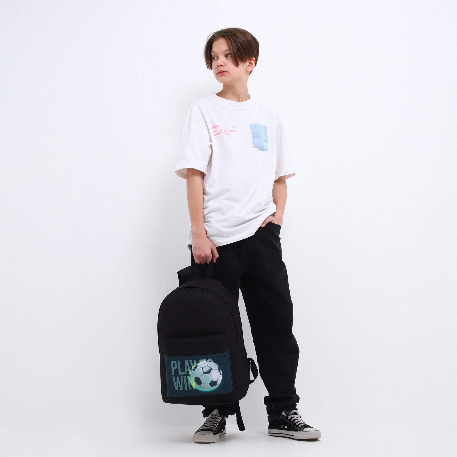 Рюкзак школьный детский для мальчика "Футбол", 33x13x37, отдел на молнии, карман, чёрный, 13x33x37 см., NAZAMOK KIDS, Россия