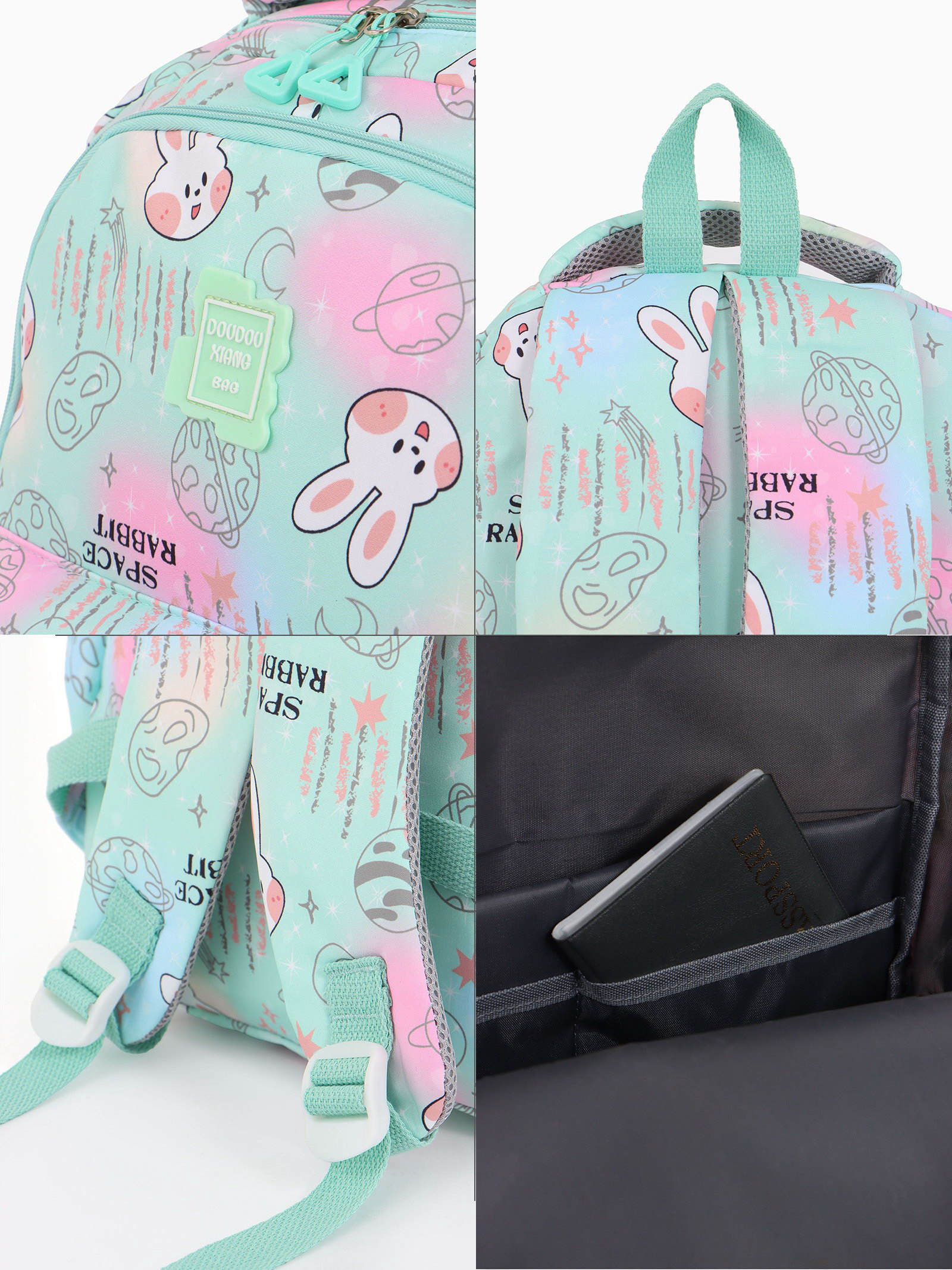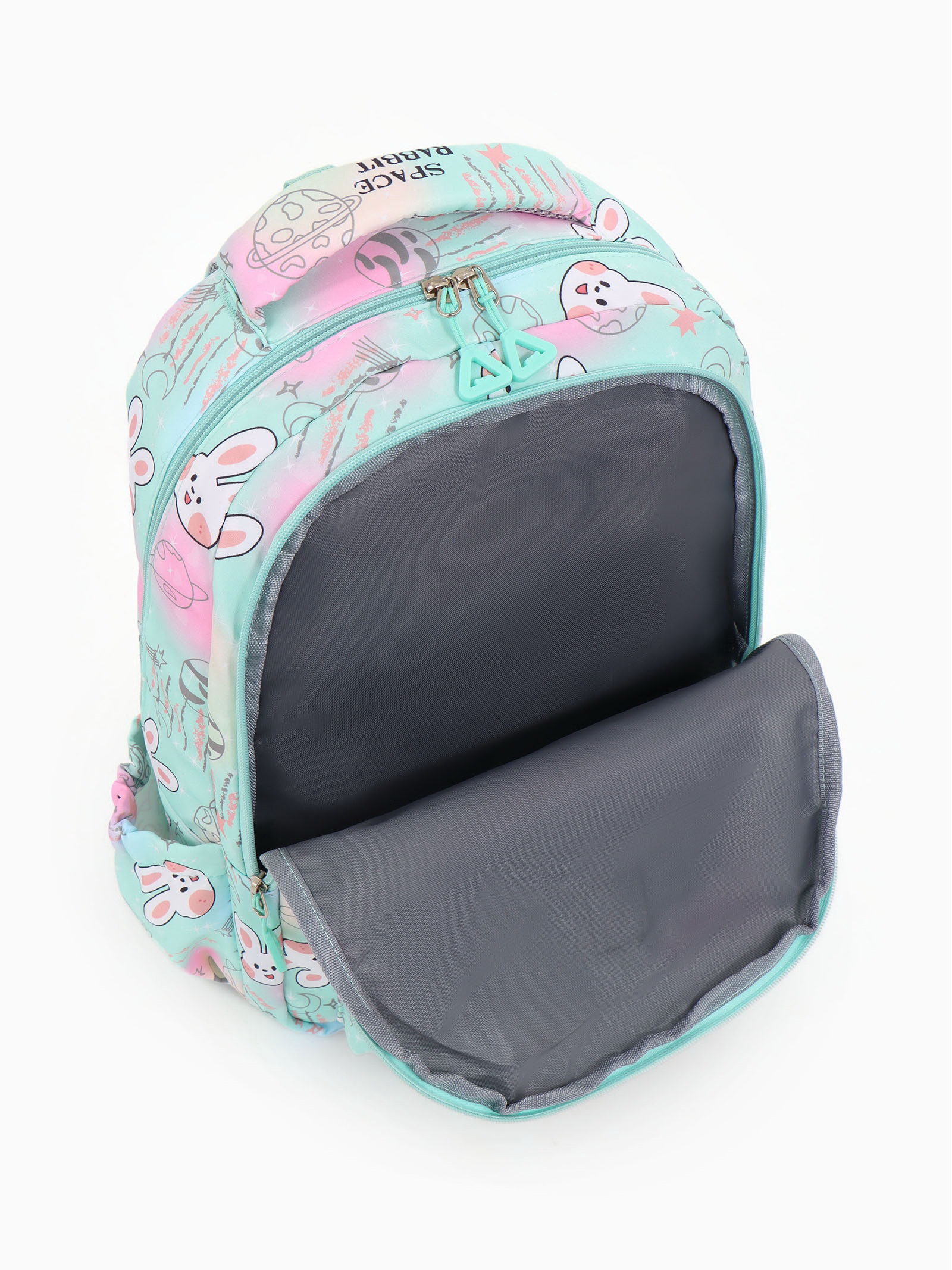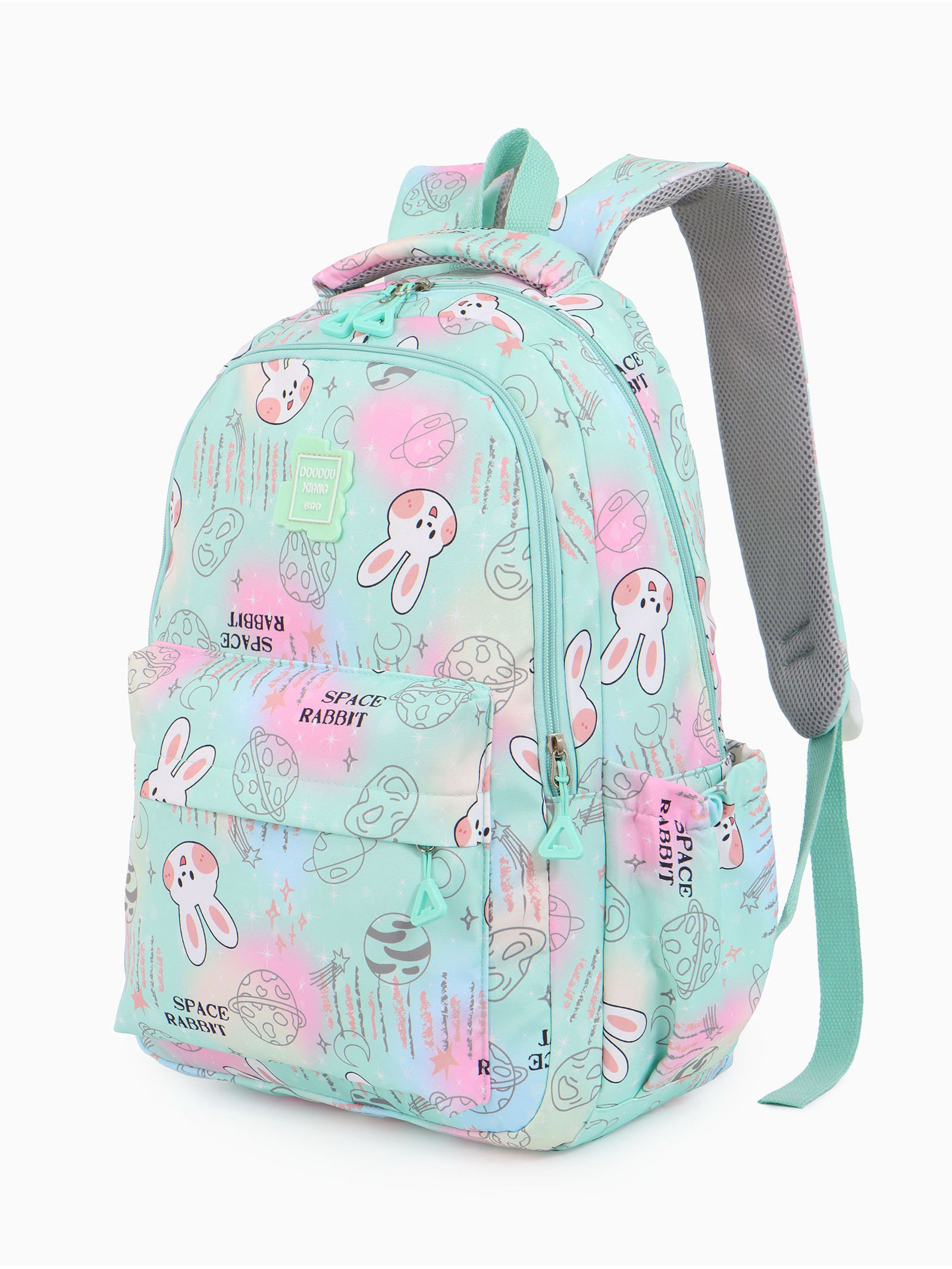Изображение: Заяц/Кролик, Космос Размер упаковки: 4 x 46 x 40 см. Количество лямок: 2 Особенности ранцев: Мягкая спинка Количество отделений: 2 Цвет: Бирюзовый Размер: 15-20 литров (средний) см Размер: 15-20 литров (средний) см tnved: 4202129200 Рисунок: Да Для кого: Для девочки Возраст: 1-5 класс Набор: Нет Тип: Рюкзак мягкий Вид застёжки: Молния Этот бирюзовый рюкзак для девочек станет верным спутником в школьном путешествии с 1 по 5 класс. Мягкая ортопедическая спинка повторяет изгибы спины, равномерно распределяя вес учебников и тетрадей. Два просторных отделения на молнии и дополнительные карманы помогут быстро найти сменную обувь, пенал или ключи. Объёма 15-20 литров достаточно для всего необходимого, а средний размер 30x15x44 см удобен для ребёнка. Особенности