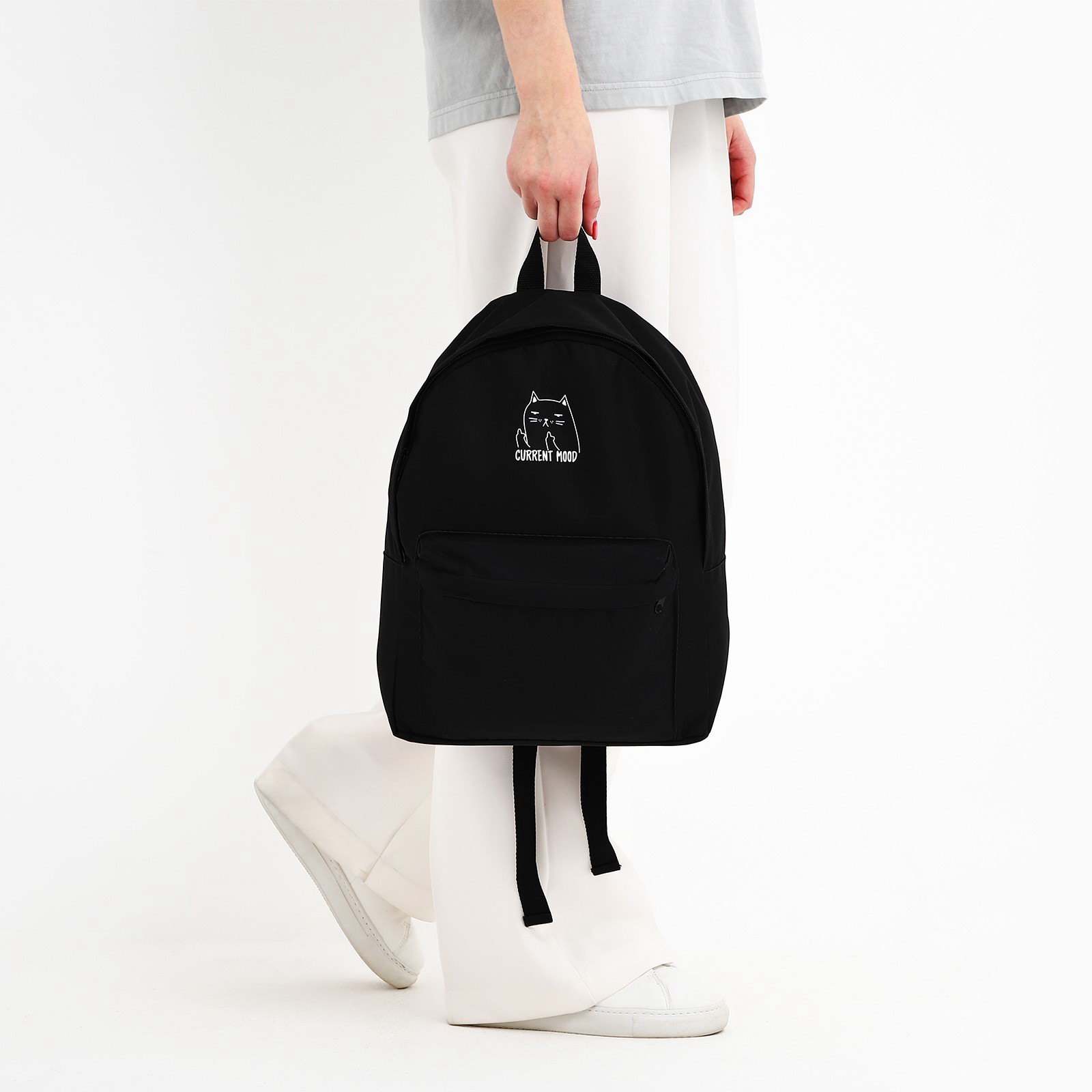 Рюкзак школьный текстильный "Котик, с карманом", 27x11x37, чёрный, 11x27x37 см., NAZAMOK, Россия