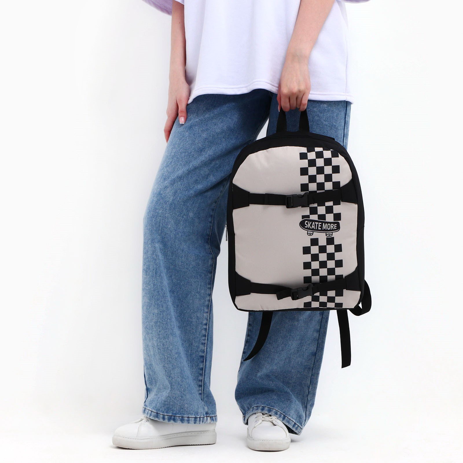 Цвет: Бежевый, Чёрный Размер упаковки: 29 x 2 x 38 см. Рисунок: Да Вид: Рюкзак Количество лямок: 2 Стиль: Повседневный Тематика: Клетка Набор: Нет Возраст: 5-11 класс Изображение: Клетка Для кого: Унисекс Тип: Рюкзак мягкий Количество отделений: 1 Размер: До 15 литров (маленький) см tnved: 4202129200 tnved: 4202129200 Особенности ранцев: Мягкая спинка Вид застёжки: Молния