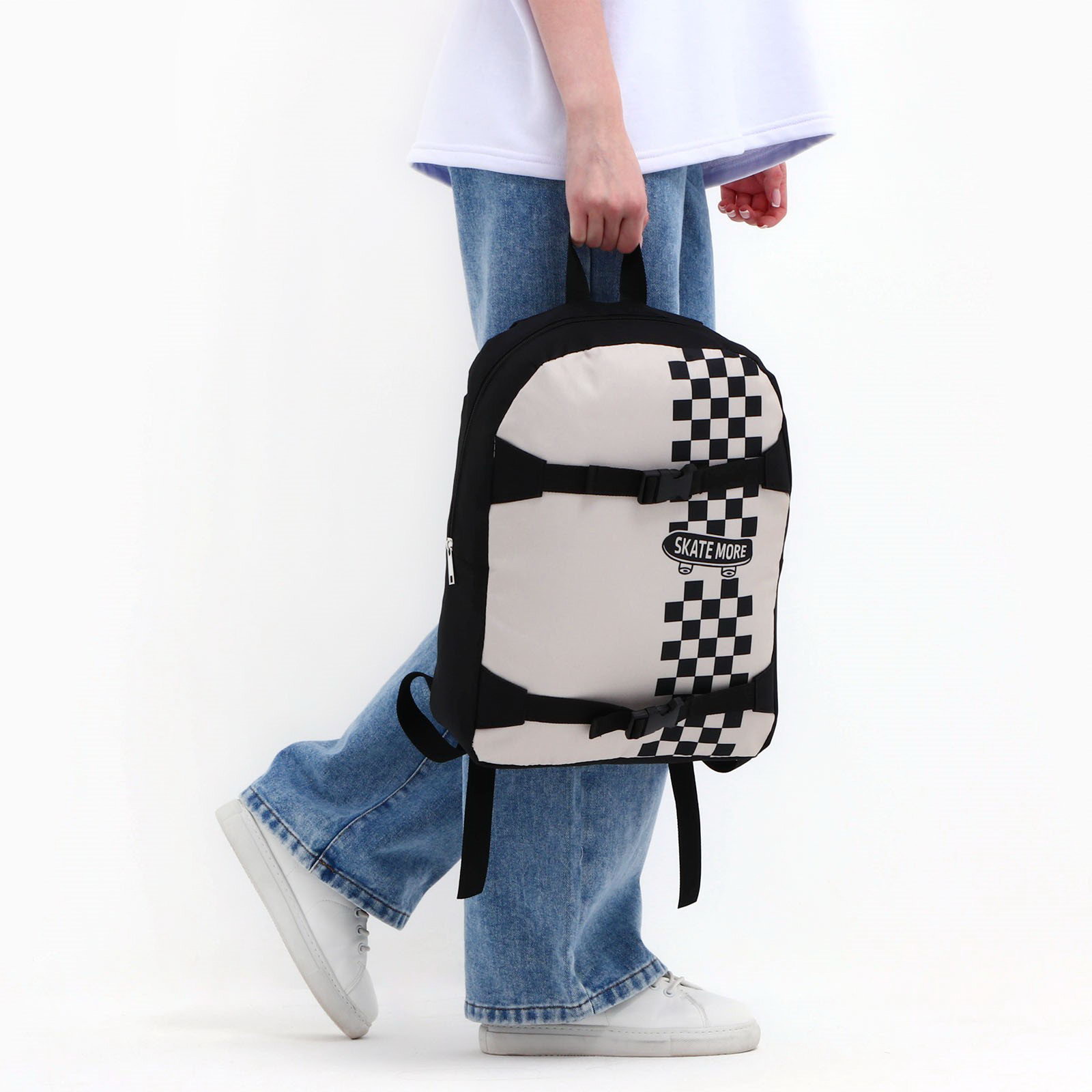 Рюкзак школьный текстильный с креплением для скейта Skate more, 38x29x11 см, чёрный, отдел на молнии, 29x11x38 см., NAZAMOK, Китай