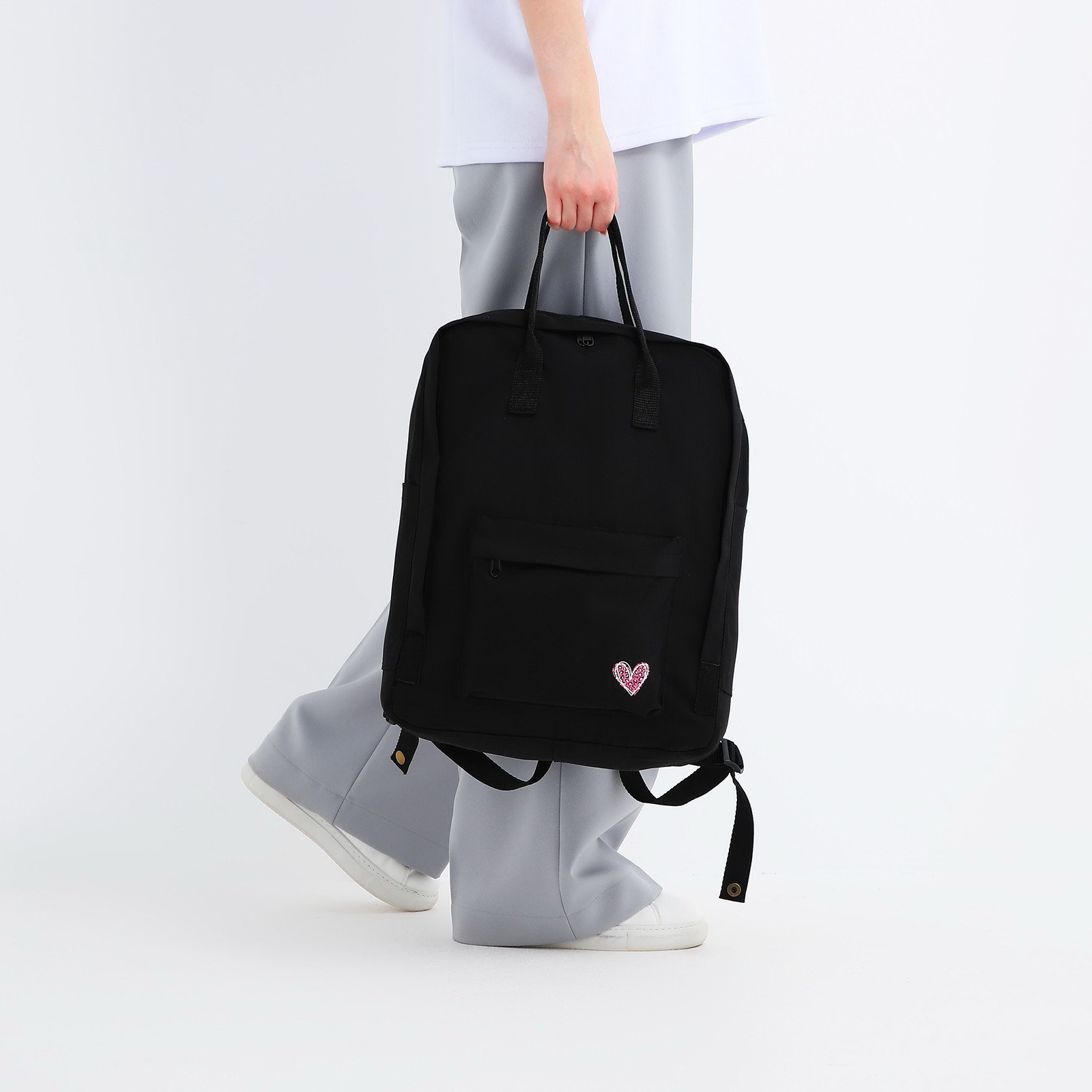 Рюкзак школьный текстильный Love, 38x27x13 см, чёрный, 29x13x38 см., NAZAMOK, Китай