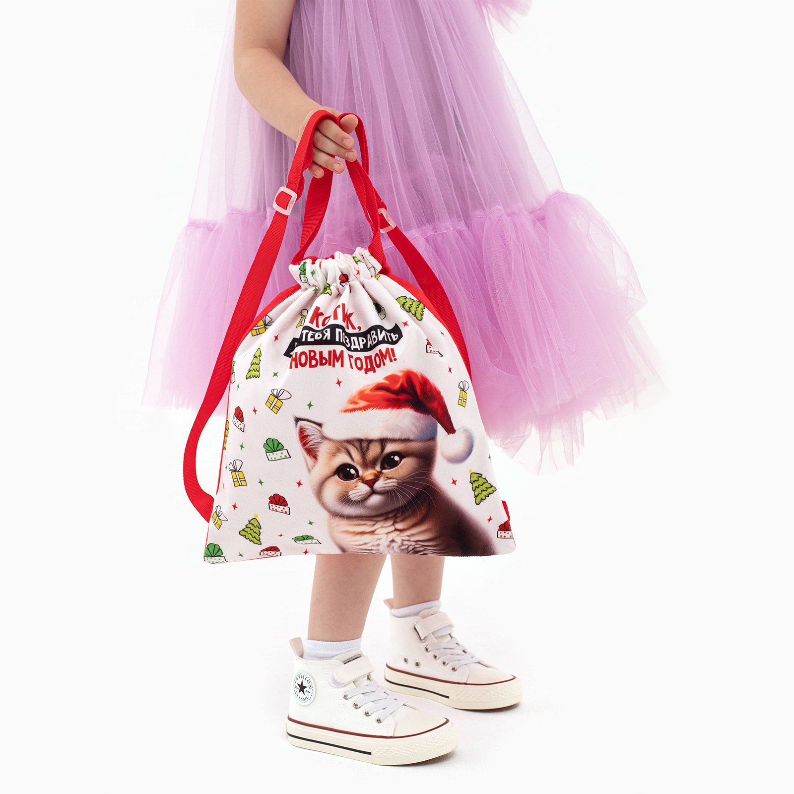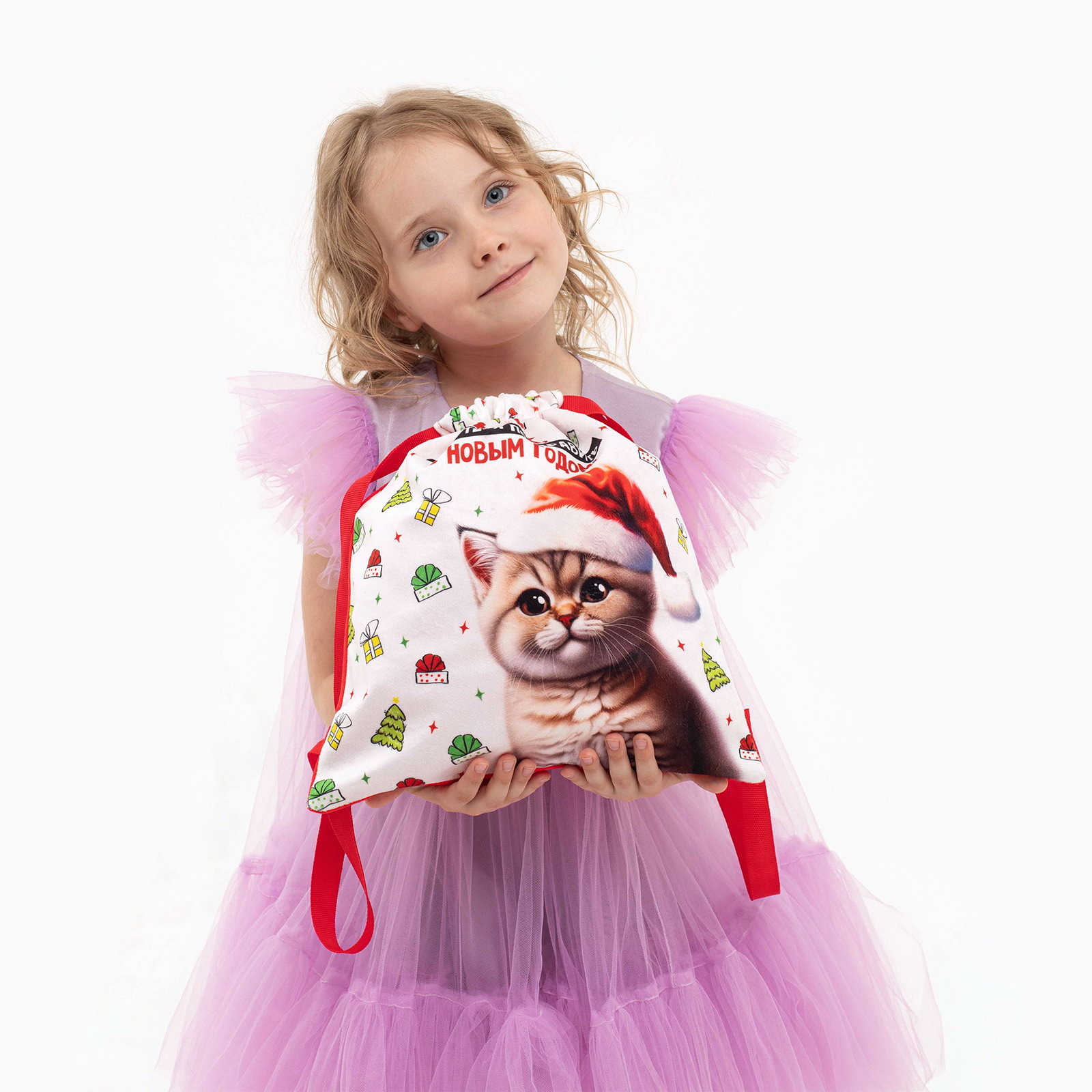 Рюкзак - мешок детский новогодний "Котик в шапке", 35x30 см, 2x30x35 см., Milo toys, Китай