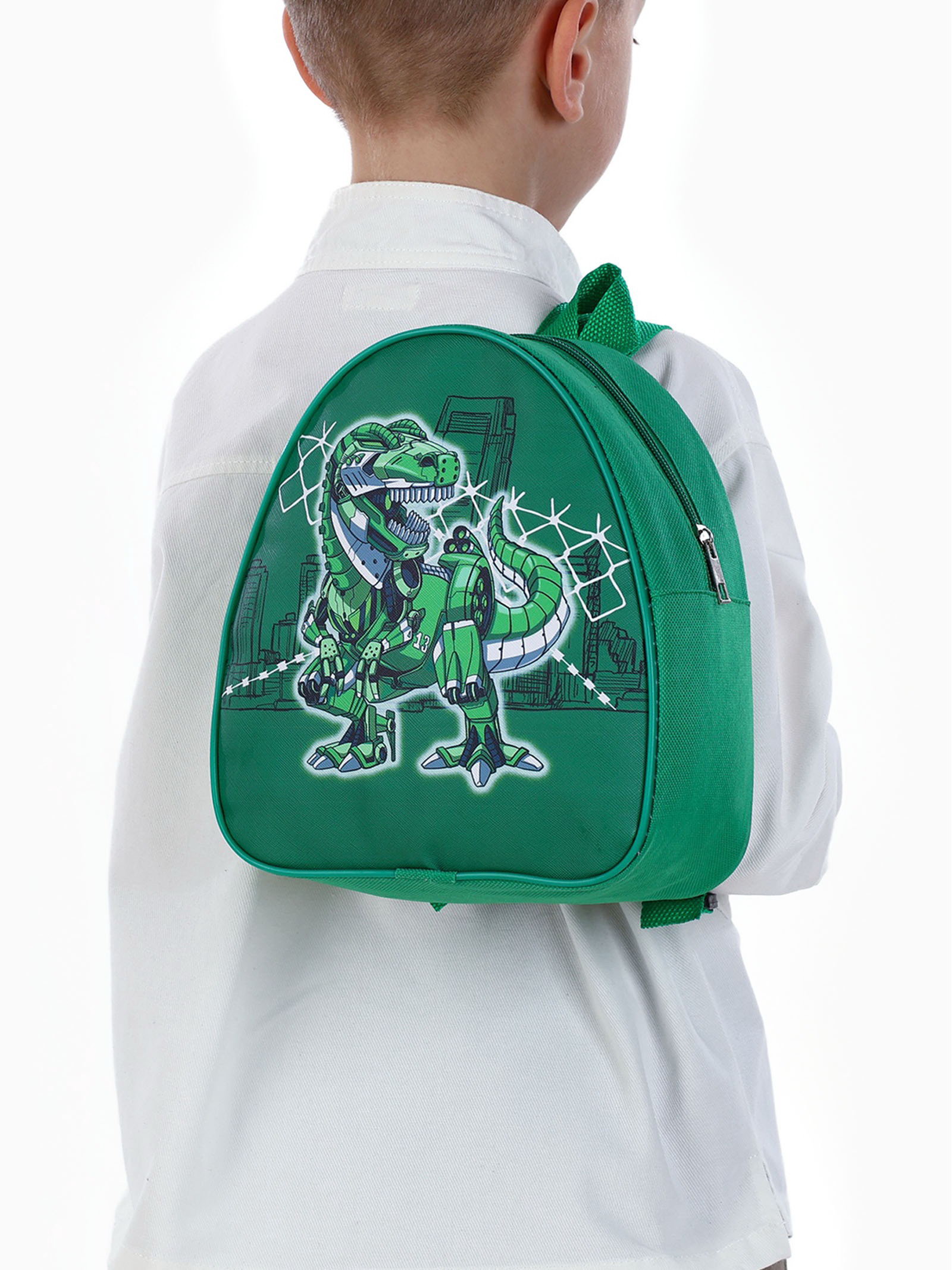 Рюкзак детский "Динозавр", на молнии, 20.5x9x23 см, зелёный, 9x20.5x23 см., Выбражулька, Китай
