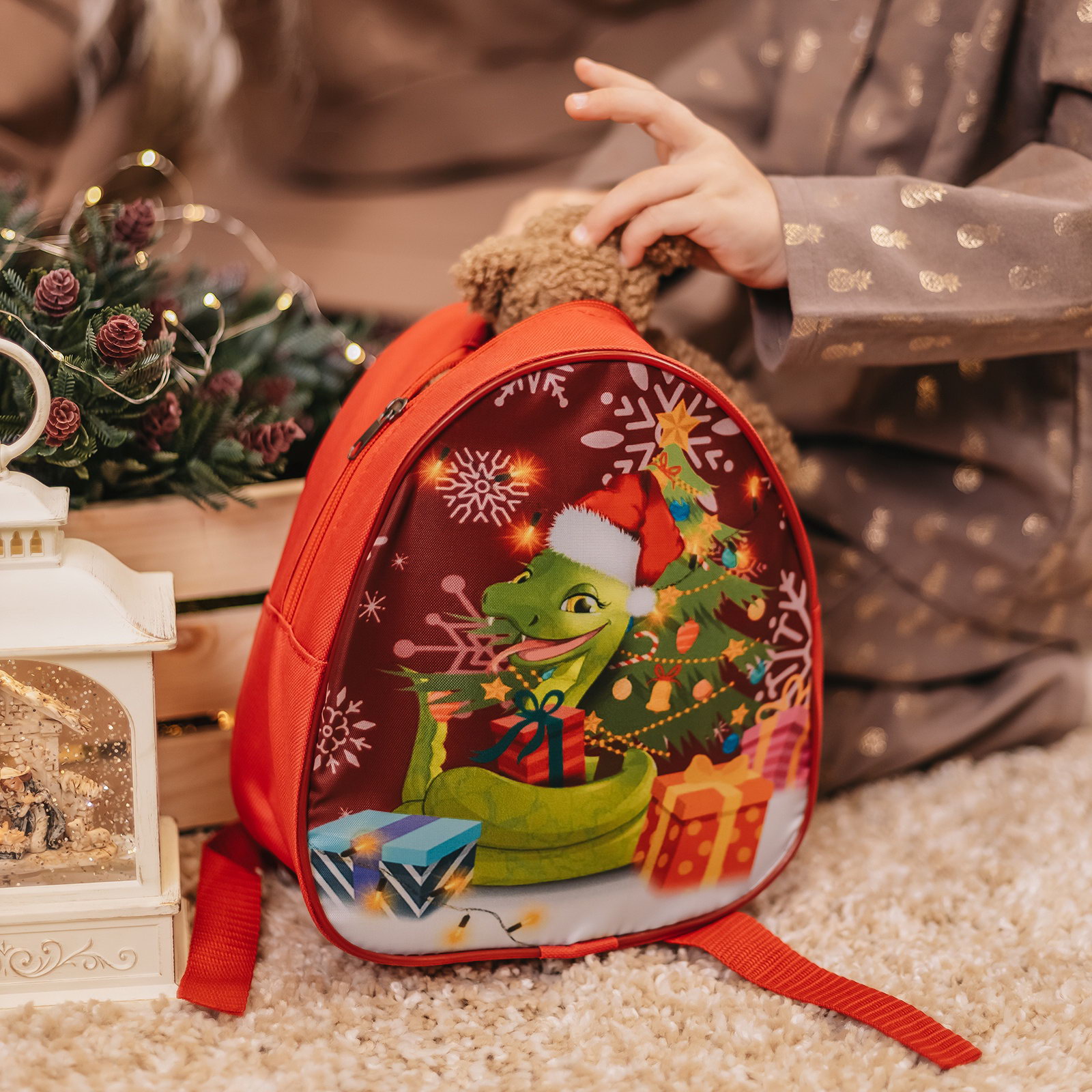 Рюкзак новогодний для подарков на молнии "Змея", красный, 21x9x23 см., Выбражулька, Россия