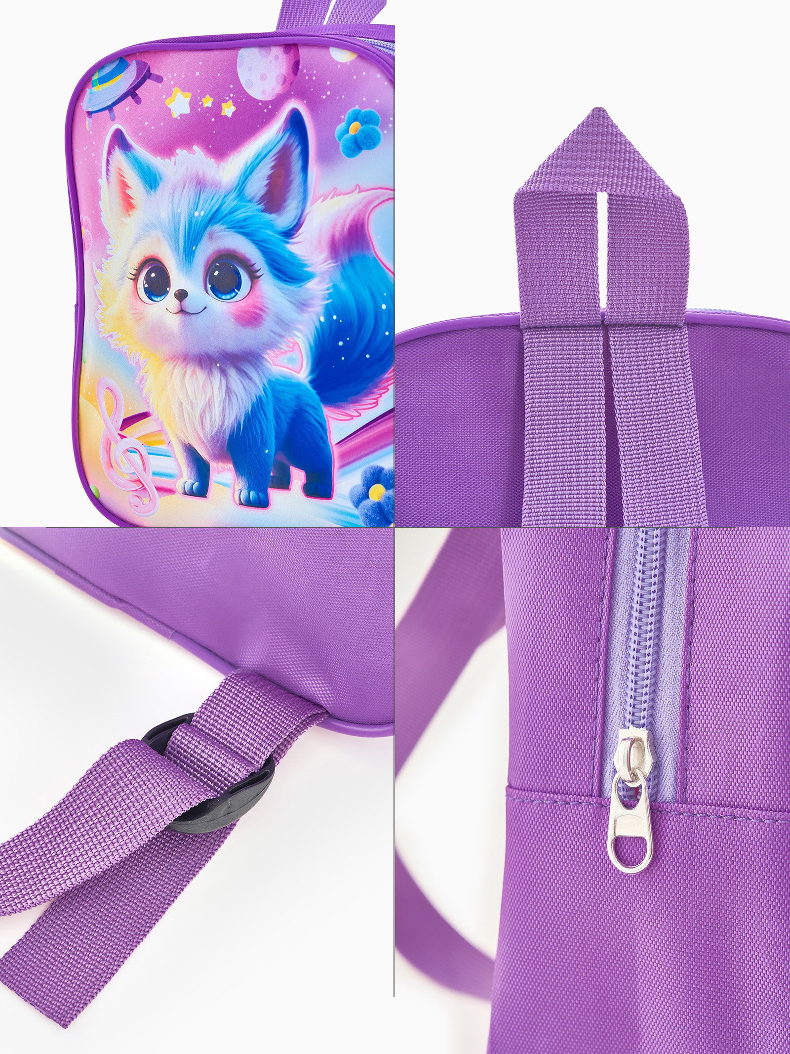 Рюкзак детский "Волшебная собачка" для девочки, на молнии, 20.5x9x24 см, сиреневый, 9x20.5x24 см., Выбражулька, Китай