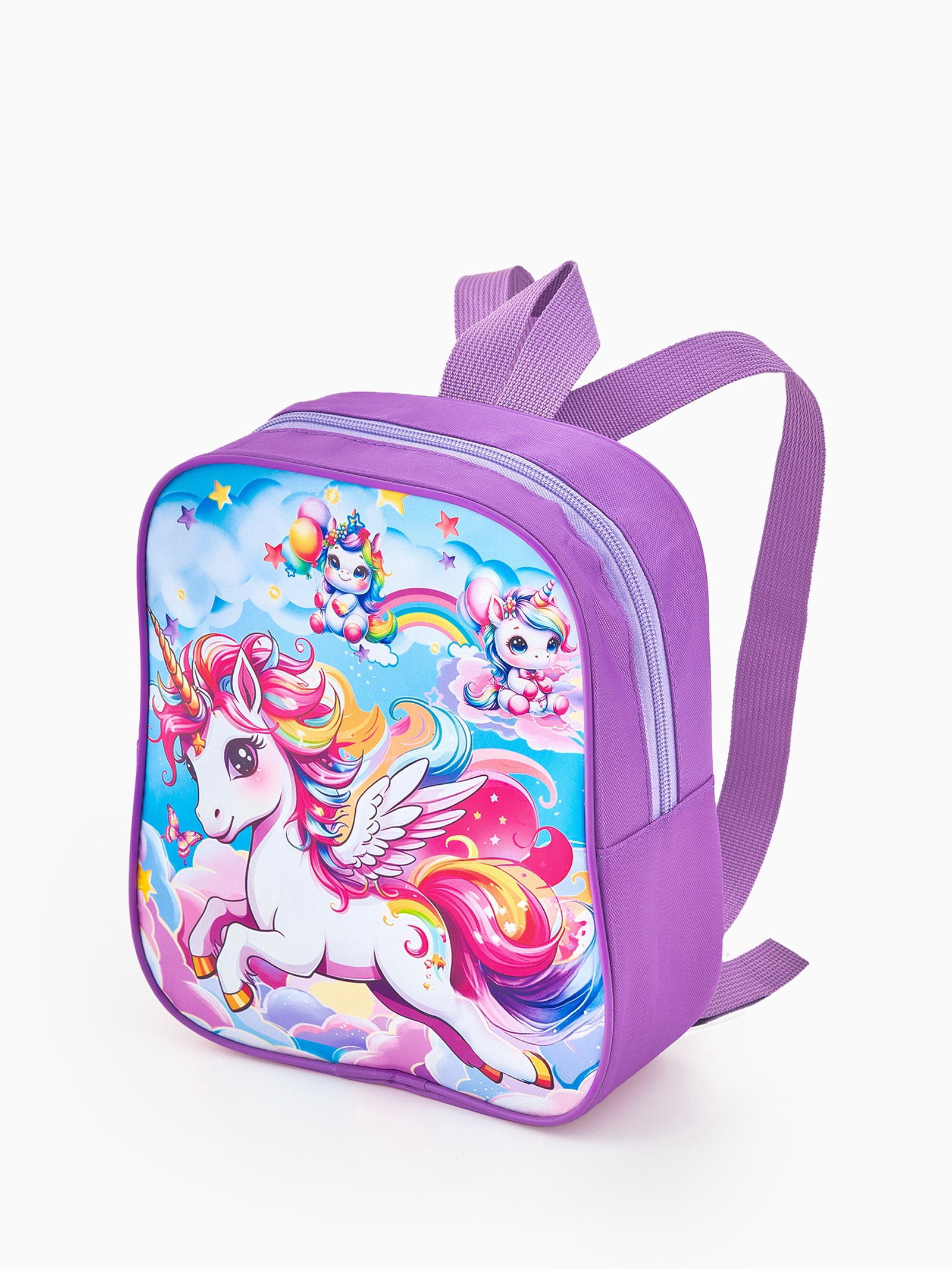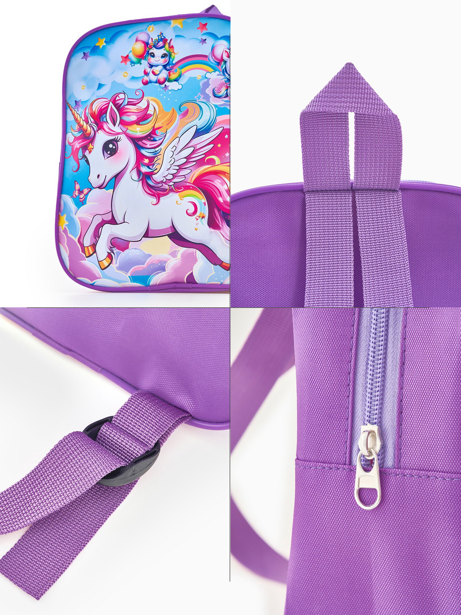 Рюкзак детский "Единороги" для девочки, на молнии, 20.5x9x24 см, сиреневый, 9x20.5x24 см., Выбражулька, Китай