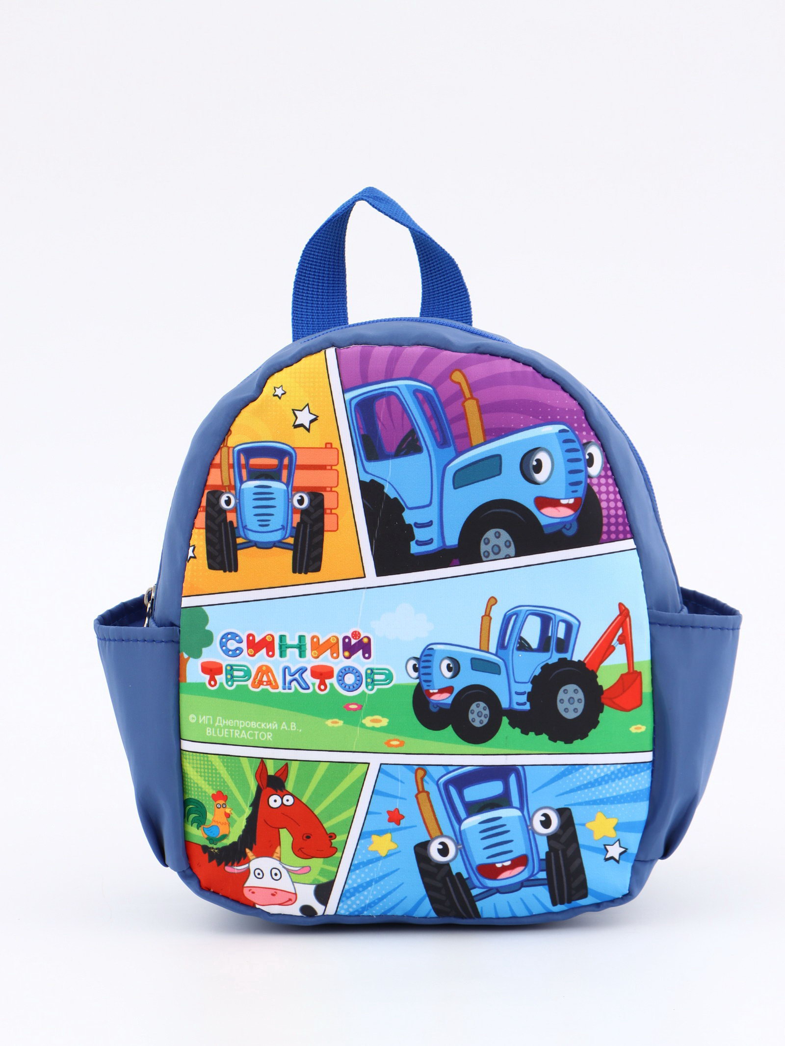 Рюкзак детский с боковыми карманами 22x18x8 см, 18x22x9 см., Синий трактор, Китай