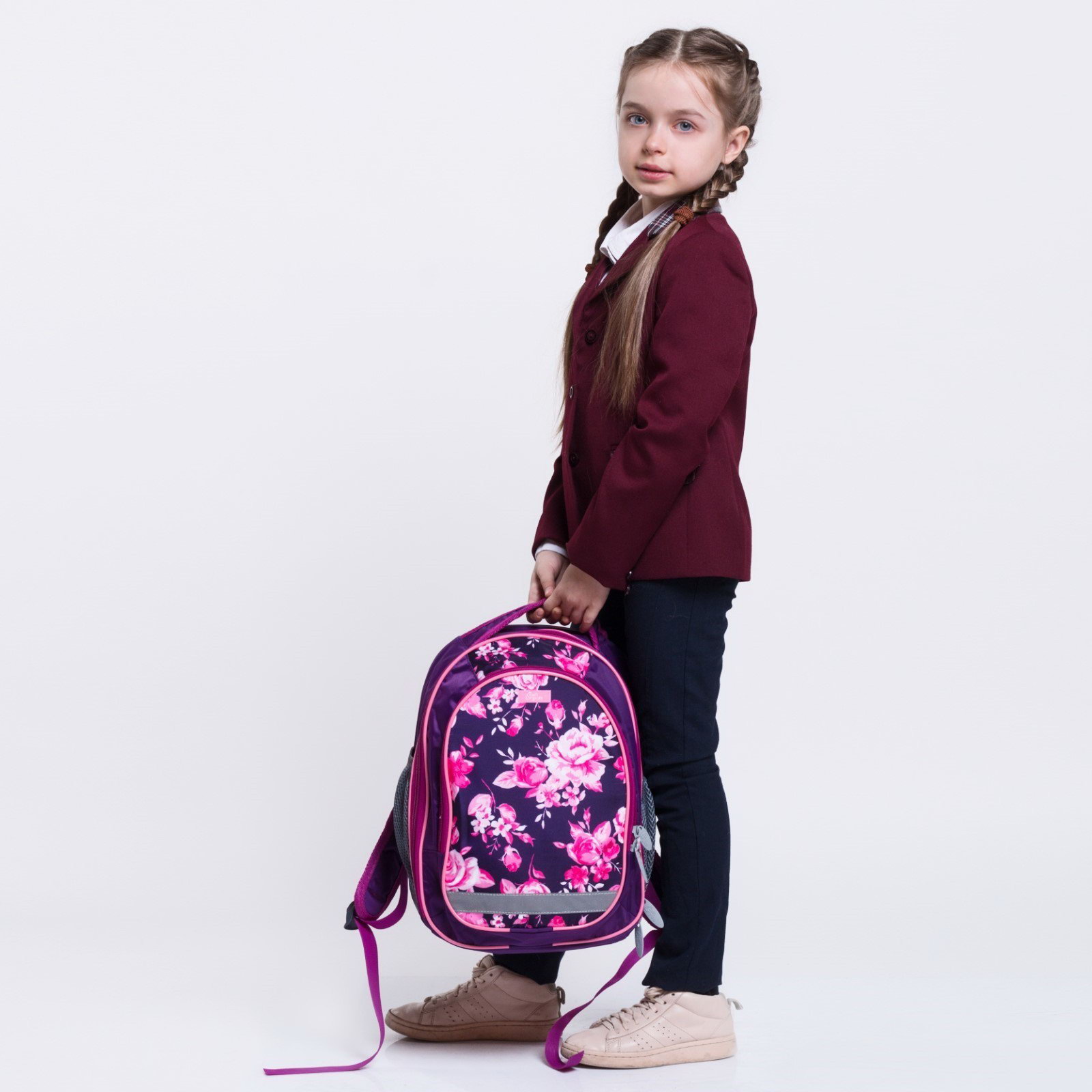 Цвет: Розовый, Сиреневый Размер упаковки: 27 x 6 x 37 см. Для кого: Для девочки Тип: Рюкзак мягкий Возраст: 1-5 класс Особенности ранцев: Жёсткая эргономичная спинка Лицензия: Нет Количество лямок: 2 Размер: 15-20 литров (средний) см tnved: 4202121200 Набор: Нет Рисунок: Да Штрихкод на единице товара: Да Количество отделений: 2 Изображение: Цветочно-растительный Европодвес: Да Ученический ранец для младшего школьного возраста. Выполнен из прочного непромокаемого материала с покрытием ПВХ, внутренняя поверхность продублирована плотной подкладочной тканью, внутренние швы окантованы. Вместительный основной отдел, дополнительный малый отдел, а также боковые карманы помогают удобно разместить ученические принадлежности. Цельноформованная спинка изготовлена из легких "дышащих" материалов, мягкие вкладыши образуют каналы для циркуляции воздуха. Анатомический рельеф спинки и регулируемые плечевые лямки "маечка" обеспечивают комфортную посадку ранца на спине ребенка. Отлётное жёсткое дно основного отдела и плотная основа спинки делают изделие более прочным и защищают содержимое от механических повреждений. Фурнитура лёгкая пластиковая, возможна комплектация нагрудной стяжкой. Светоотражающие элементы на передней поверхности, боковых карманах и плечевых лямках обеспечат лучшую видимость ребенка на улице и дороге в непогоду, в тёмное время суток. | ||