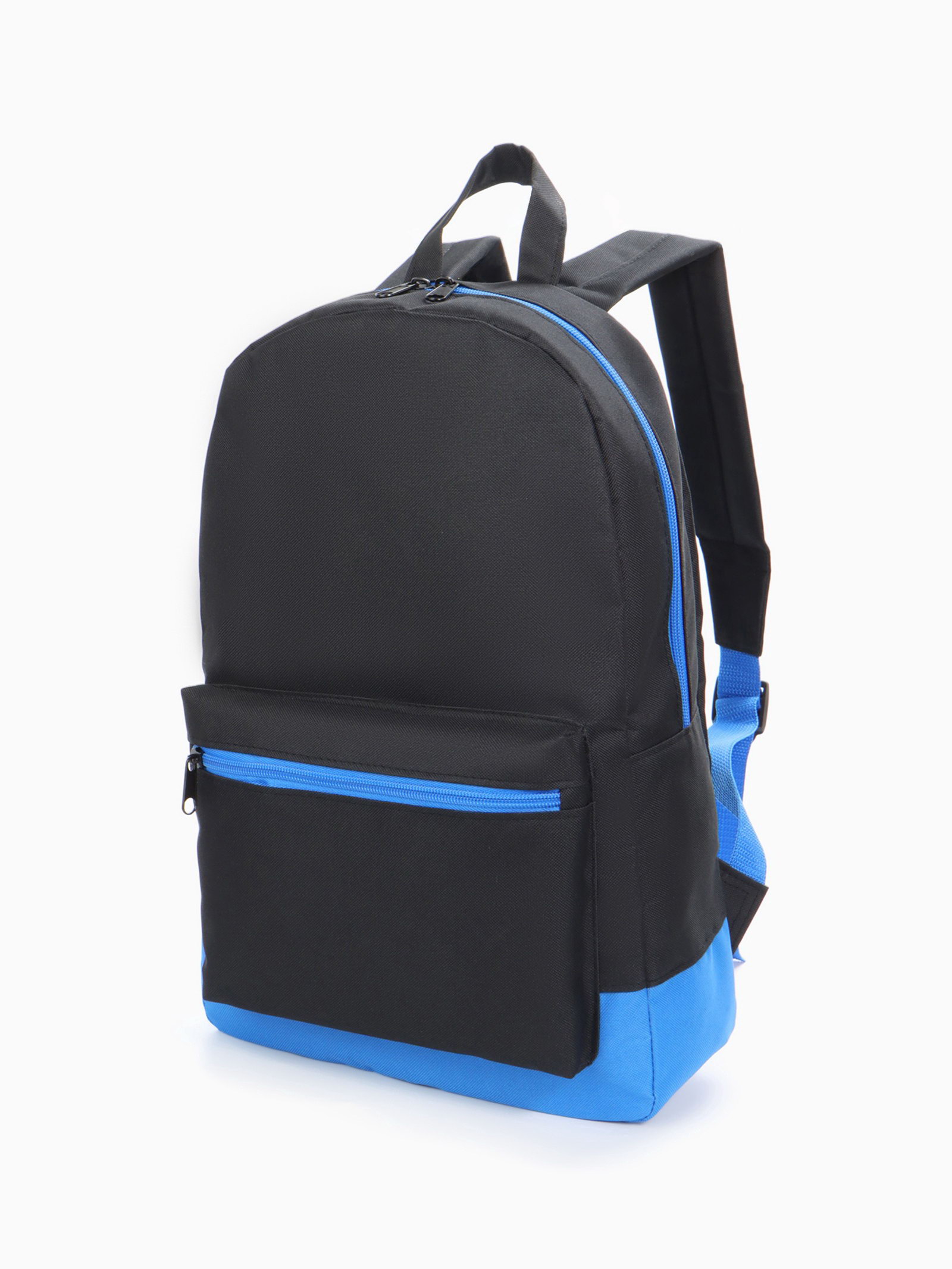 Рюкзак школьный на молнии, с карманом, размер 30x11x44 см, чёрный/синий, 11x30x44 см., ЗФТС, Россия