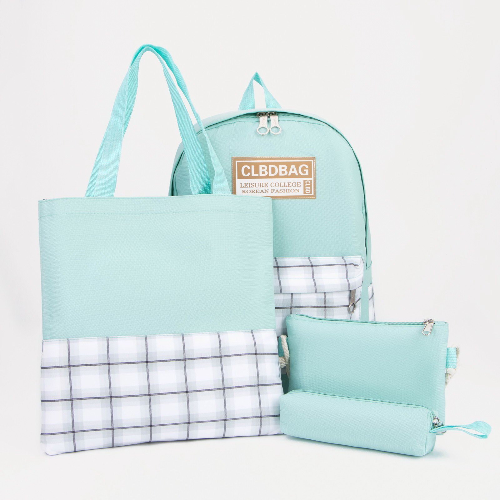Набор рюкзак на молнии, шопер, сумка, косметичка, цвет бирюзовый, 12x29x40 см., Китай
