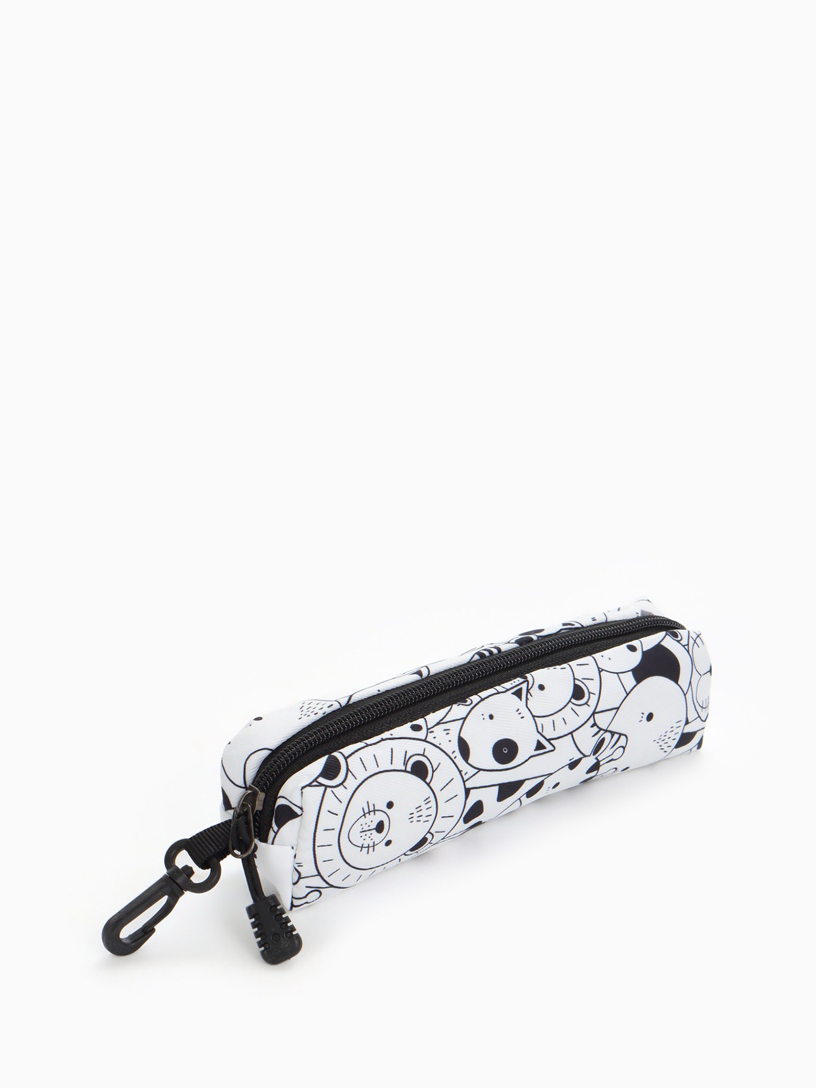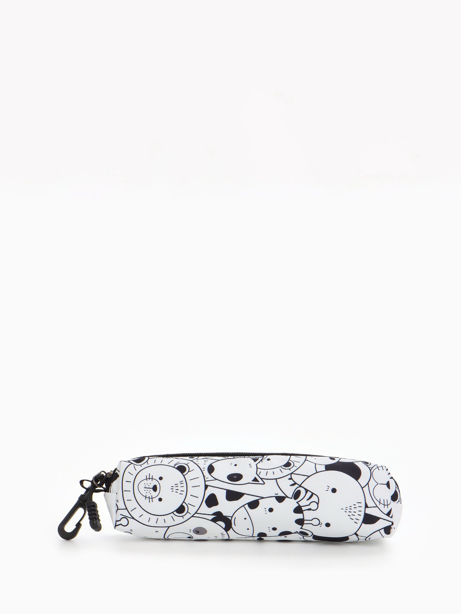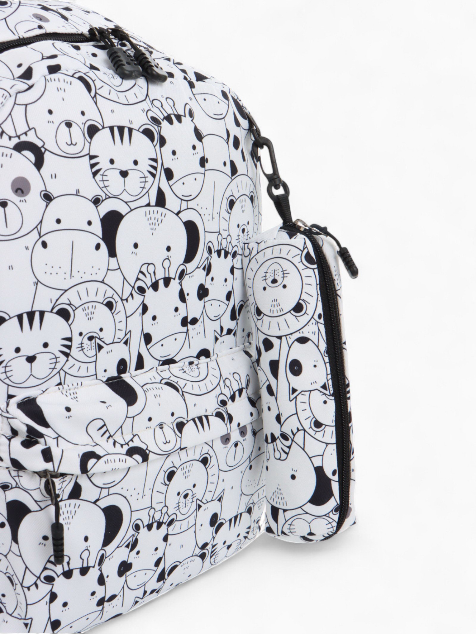 Набор: рюкзак школьный и пенал, с карманом, с принтом, белый/разноцветный, 14x30x42 см., Китай