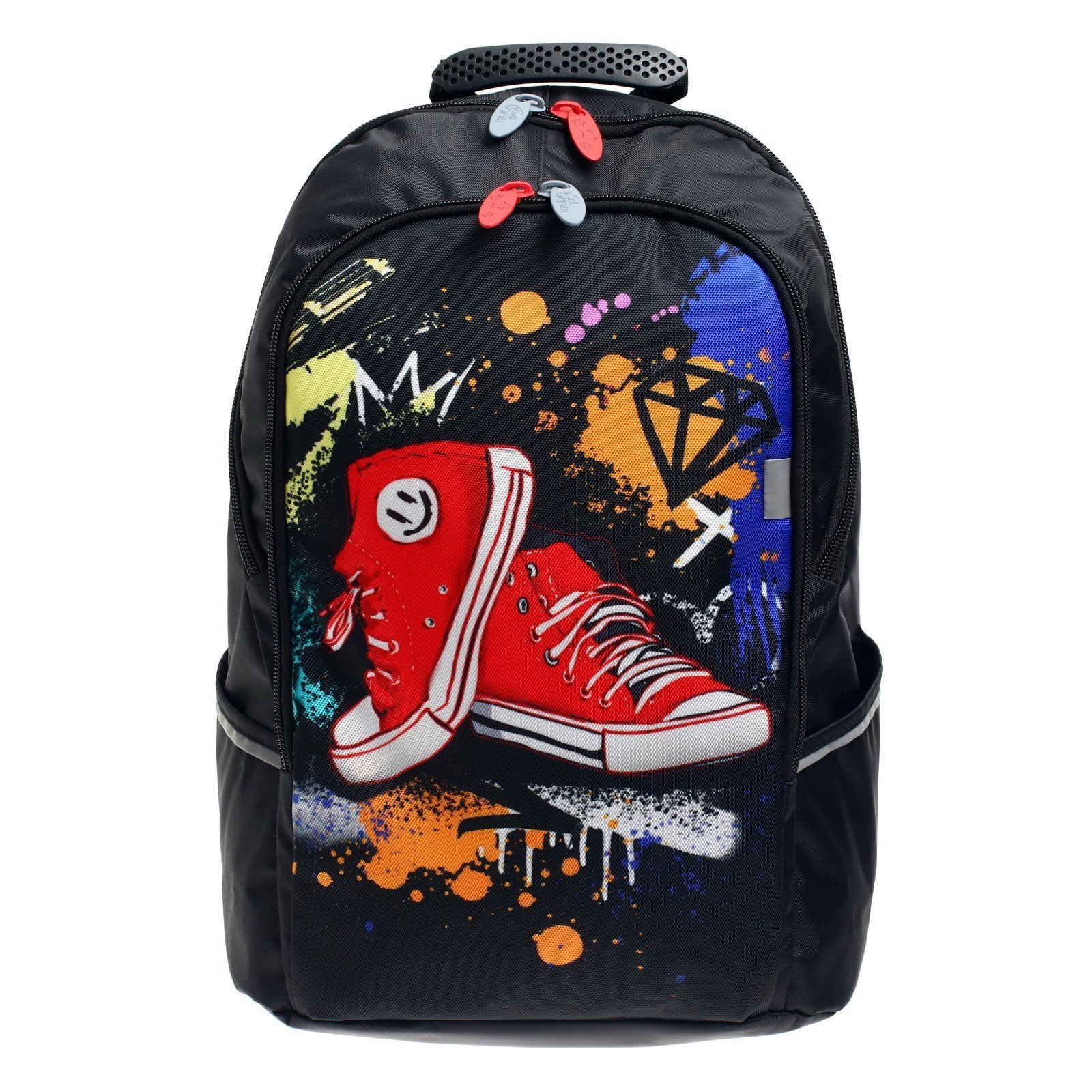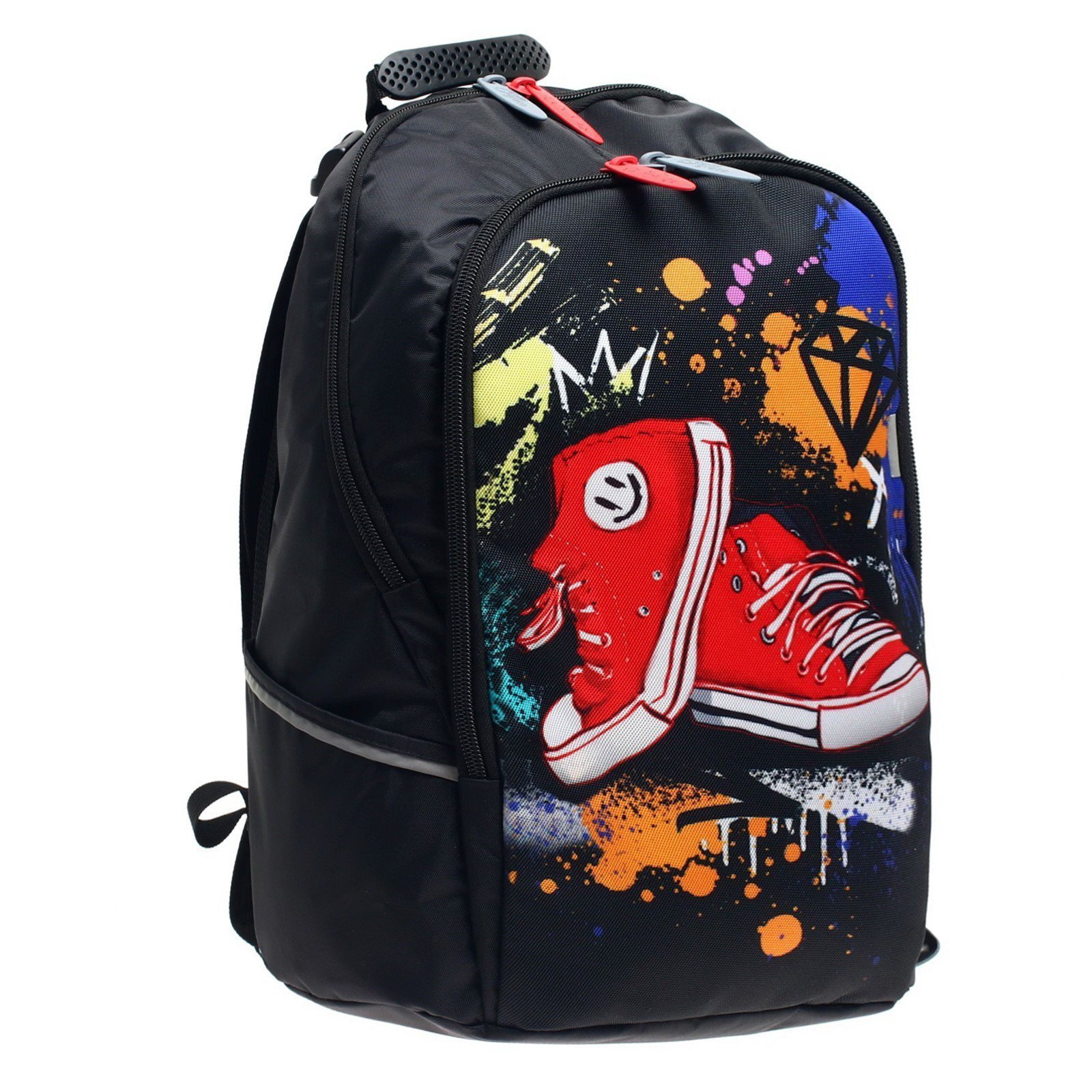 Возраст: 1-5 класс, 5-11 класс Особенности ранцев: Грудное крепление, Жёсткая эргономичная спинка Для кого: Для девочки, Для мальчика, Унисекс Цвет: Красный, Разноцветный, Чёрный Изображение: Абстракция, Обувь Размер упаковки: 26 x 6 x 37 см. Количество лямок: 2 Размер: До 15 литров (маленький) см tnved: 4202111000 Рисунок: Да Лицензия: Нет Тип: Рюкзак мягкий Штрихкод на единице товара: Да Набор: Нет Количество отделений: 2 Европодвес: Да Ученический рюкзак для младшего школьного возраста предназначен для переноски личных вещей и школьных принадлежностей. Верх изделия выполнен из прочного водоотталкивающего материала с покрытием ПВХ. Отдельные элементы оформлены оригинальной печатью. Внутренняя поверхность изготовлена из цветной подкладочной ткани, соответствующей дизайну.