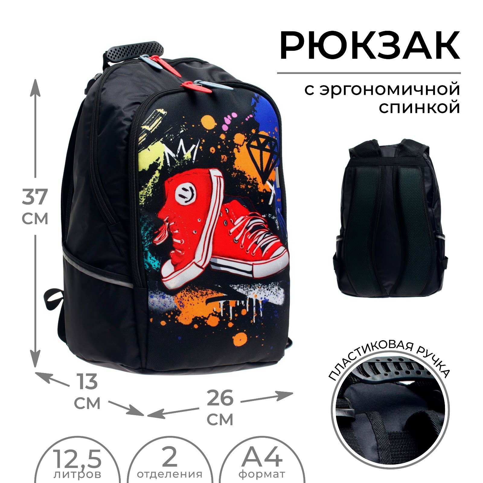 Рюкзак школьный, 37 x 26 x 13 см, эргономичная спинка, С "Кеды", Calligrata, Россия