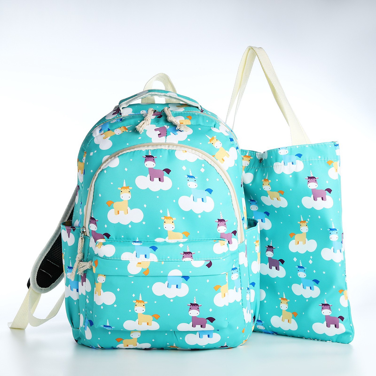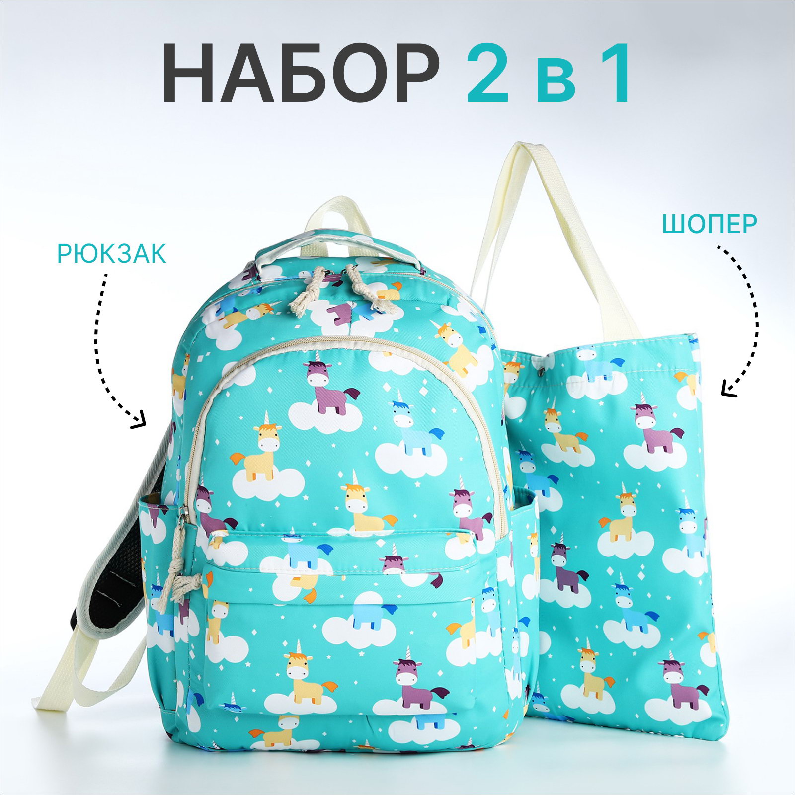 Набор рюкзак молодёжный из текстиля, сумка-шопер, цвет бирюзовый, 18x30x42 см., Китай