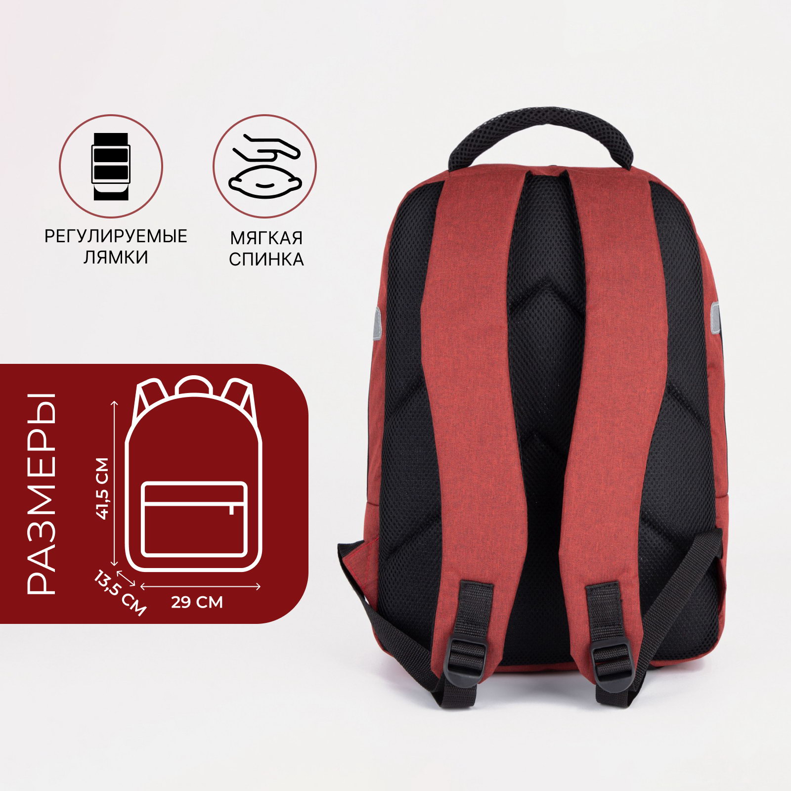 Размер упаковки: 4 x 46 x 37 см. Количество лямок: 2 Особенности ранцев: Мягкая спинка Особенности ранцев: Мягкая спинка tnved: 4202929200 Вид: Рюкзак Стиль: Повседневный Тематика: Однотонная Размер: 15-20 литров (средний) см Температурное ограничение: Нет Набор: Нет Цвет: Красный Изображение: Без рисунка Для кого: Унисекс Тип: Рюкзак мягкий Возраст: 5-11 класс Рисунок: Нет Вид застёжки: Молния