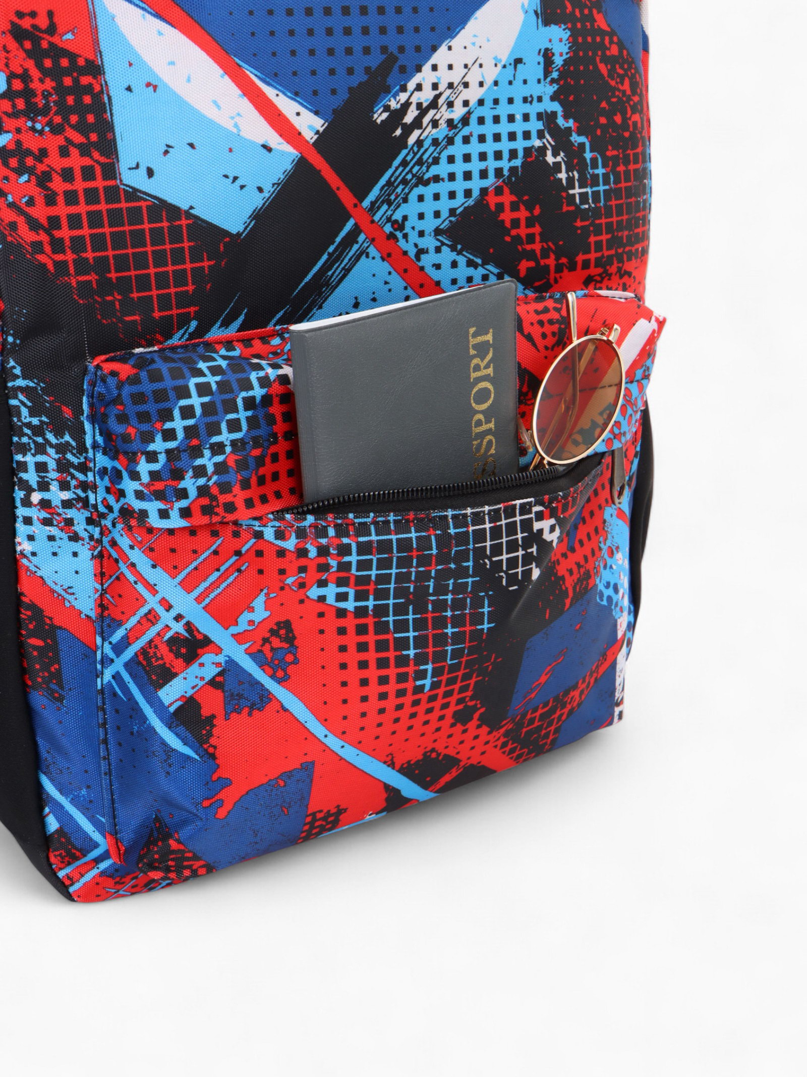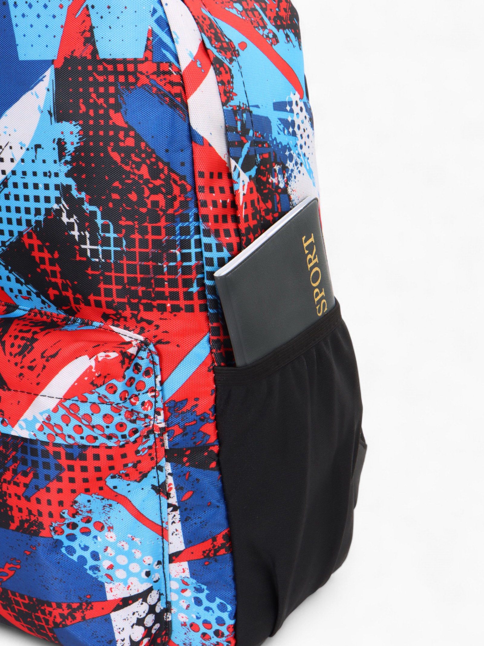 Рюкзак школьный на молнии, с карманом, с абстрактным принтом, однотонный, размер 29x12x42 см, красный/голубой, 12x29x42 см., Китай