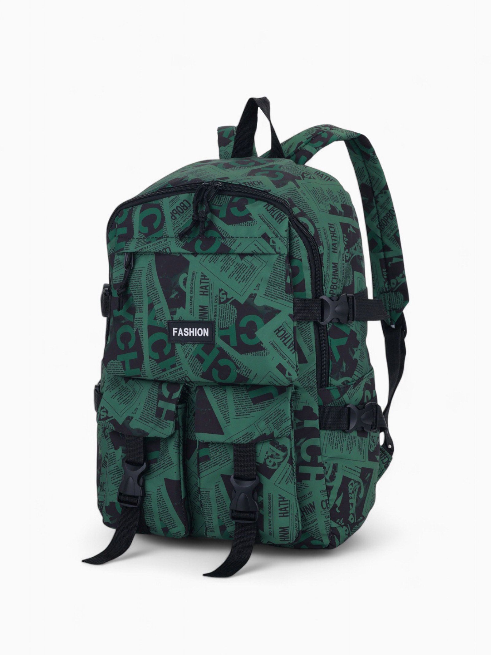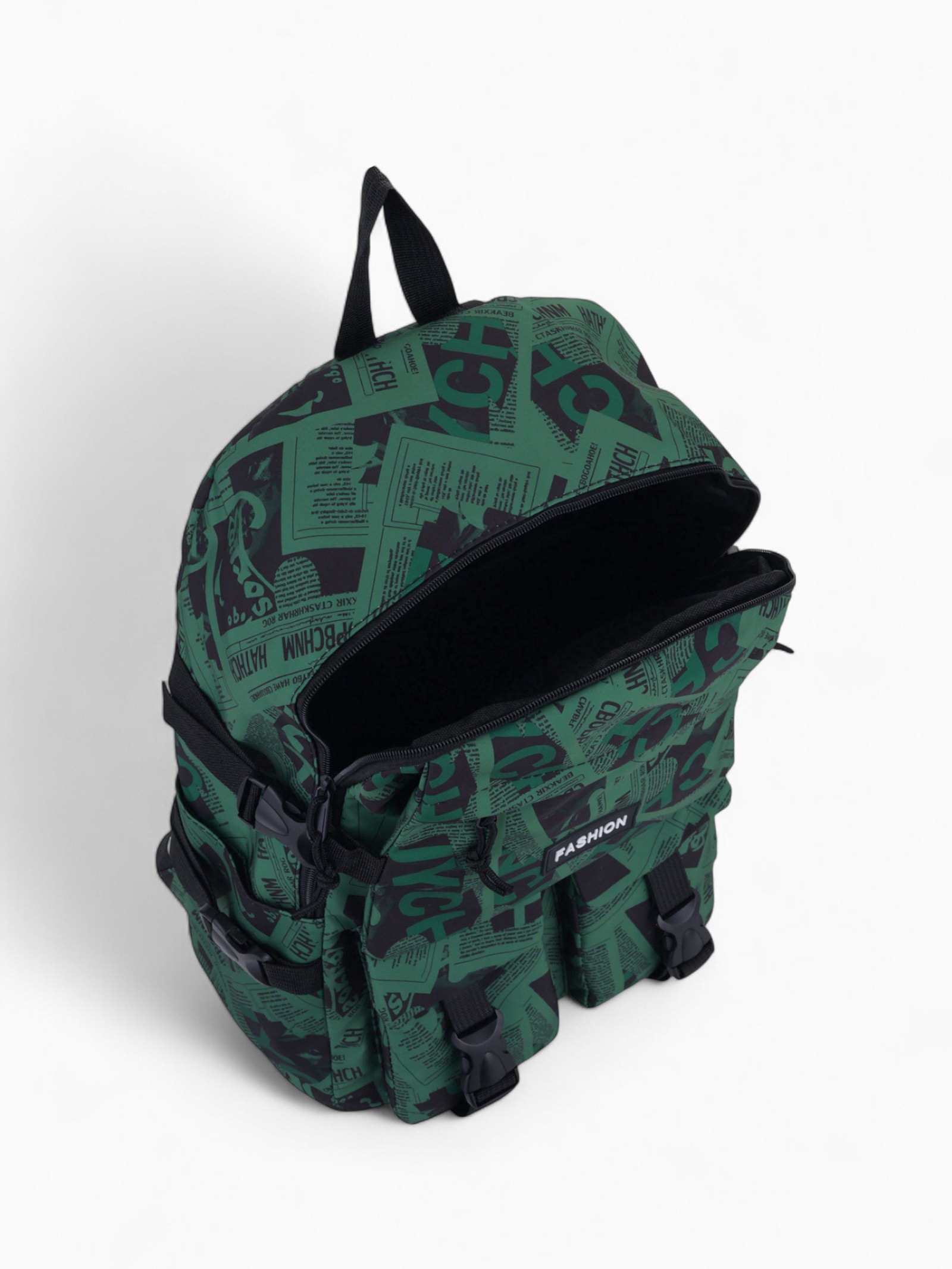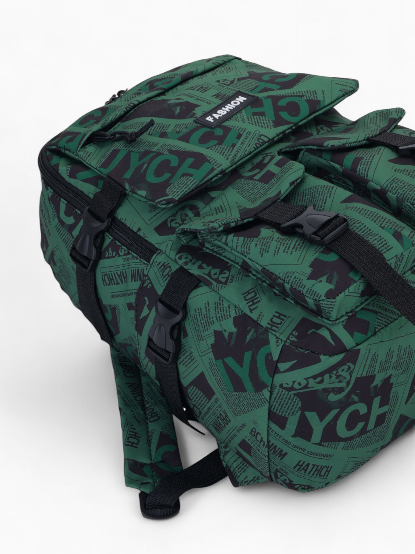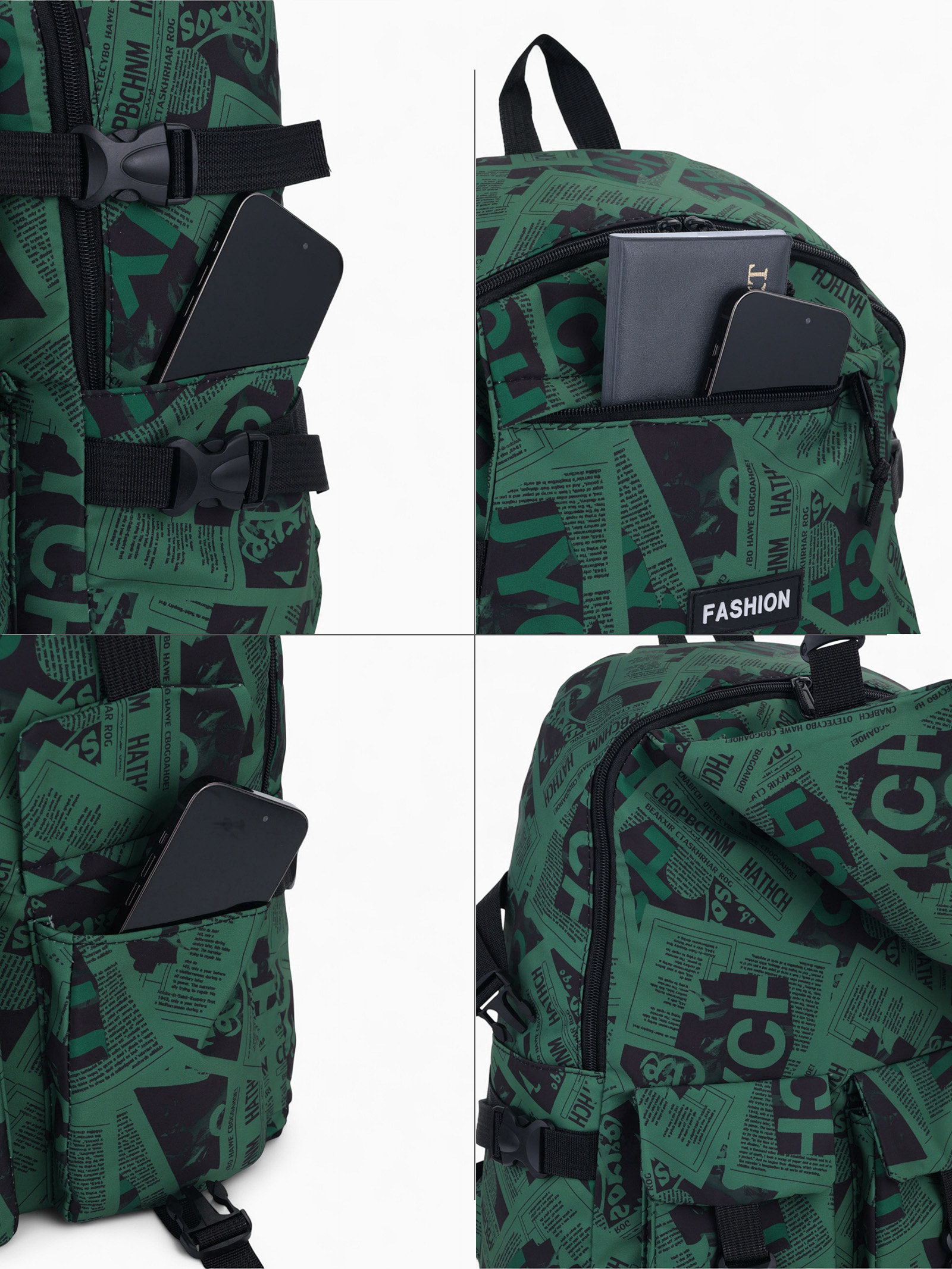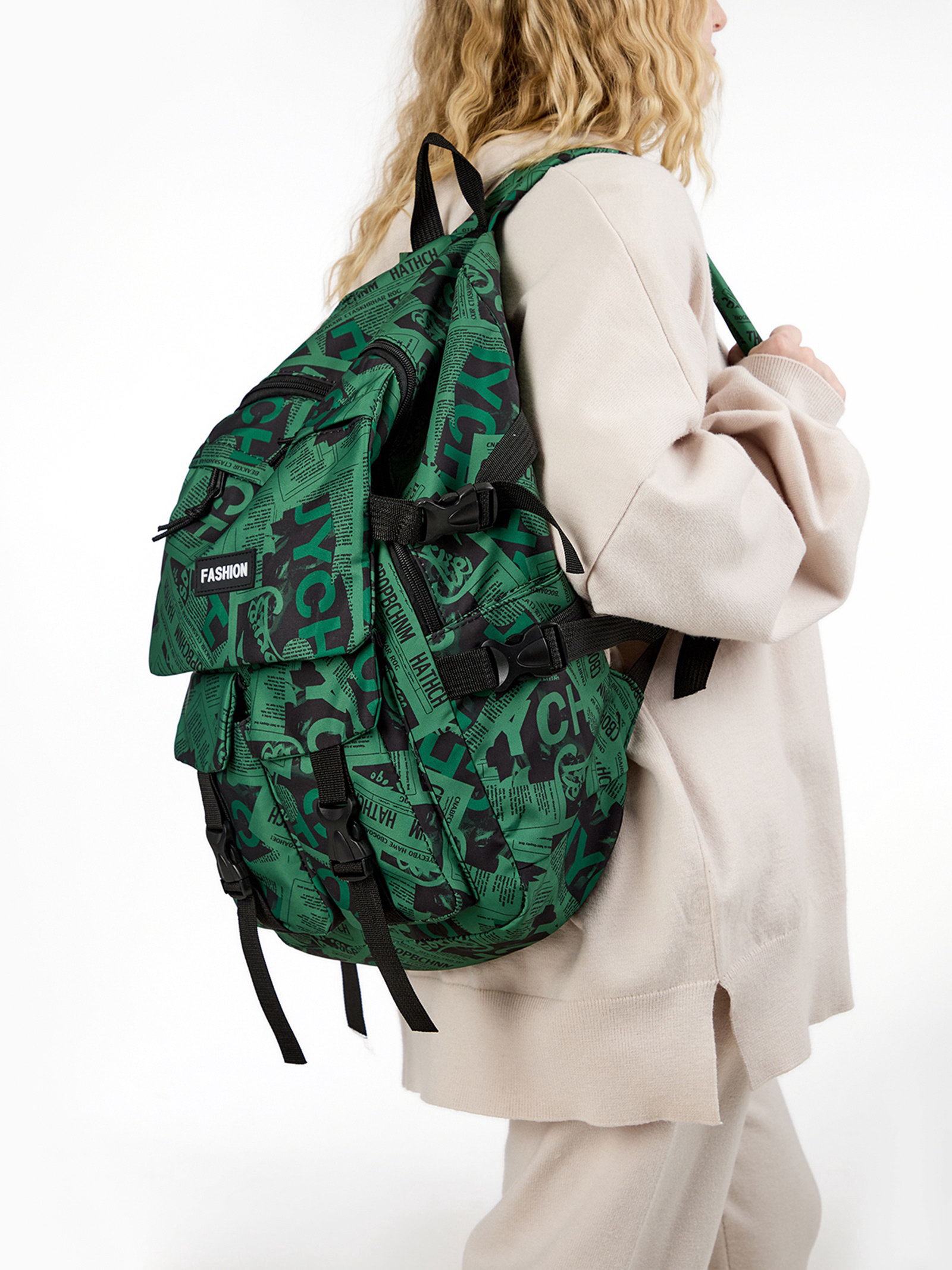 Рюкзак молодёжный на молнии, с карманами, с принтом, размер 31x13x44 см, тёмно-зелёный, 13x31x44 см., Китай