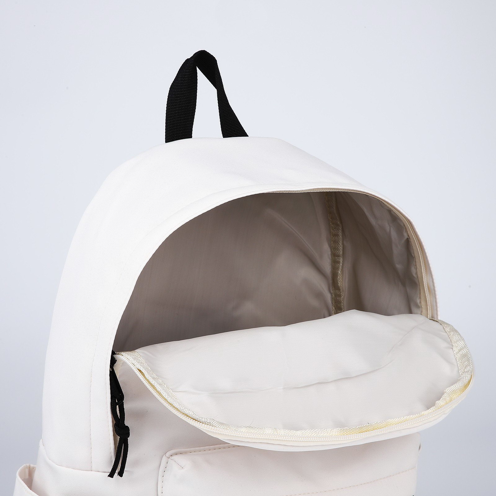 Рюкзак школьный на молнии, с карманами, белый, 14x28x39 см., Китай