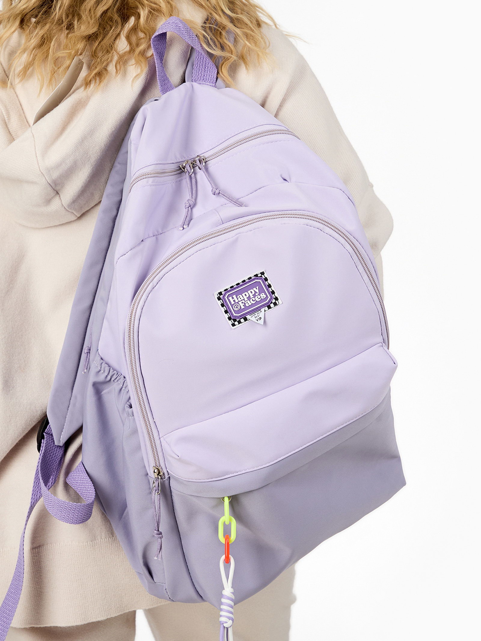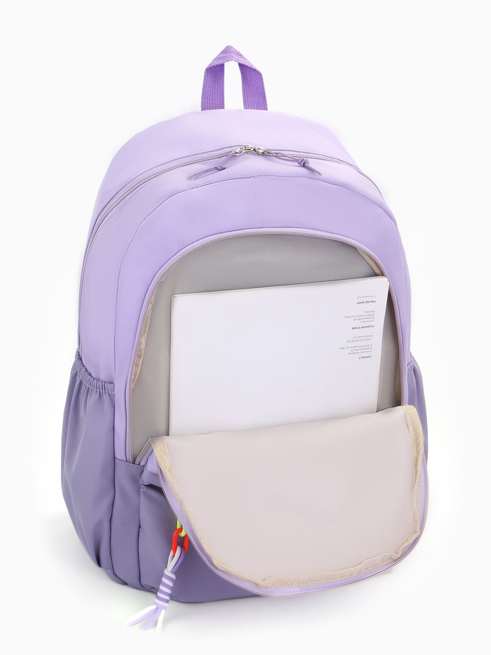 Рюкзак молодёжный на молнии, с карманами, двухцветный, размер 31x15x46 см, светло-сиреневый/сиреневый, 15x31x46 см., Китай