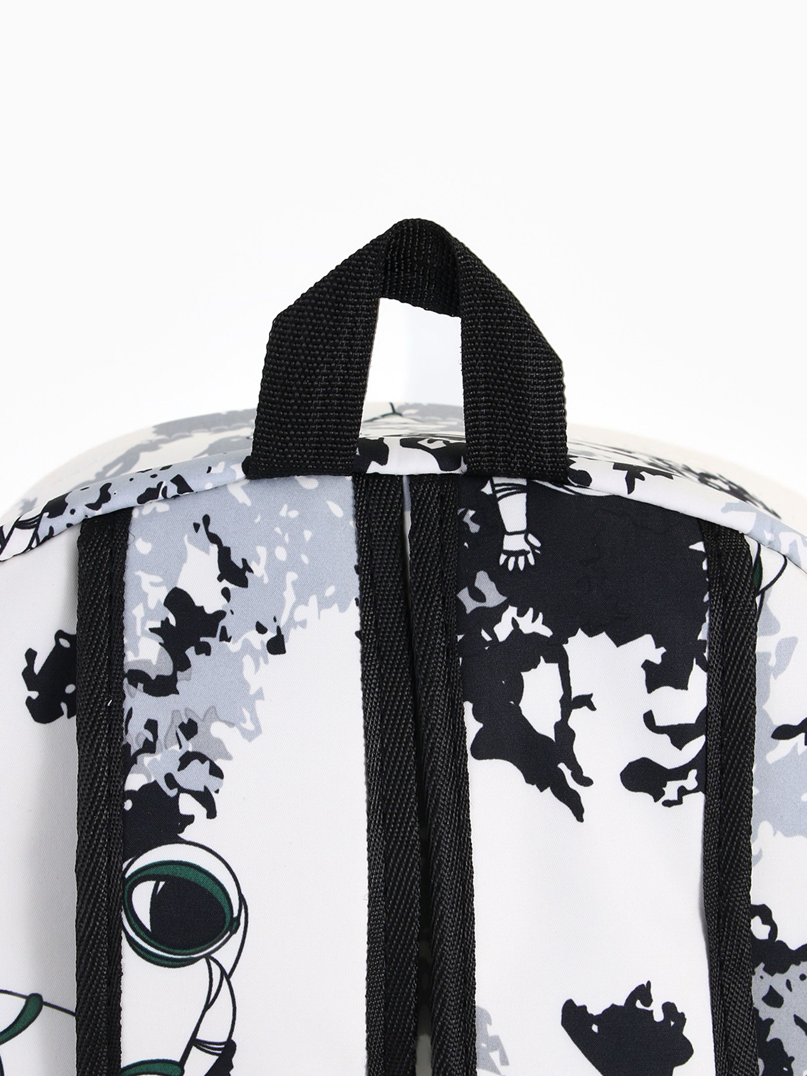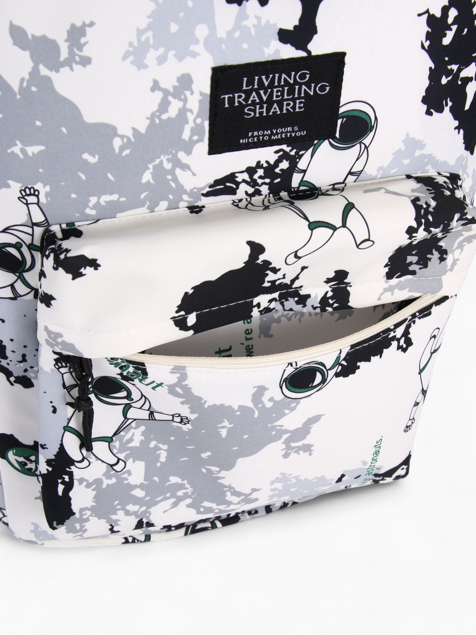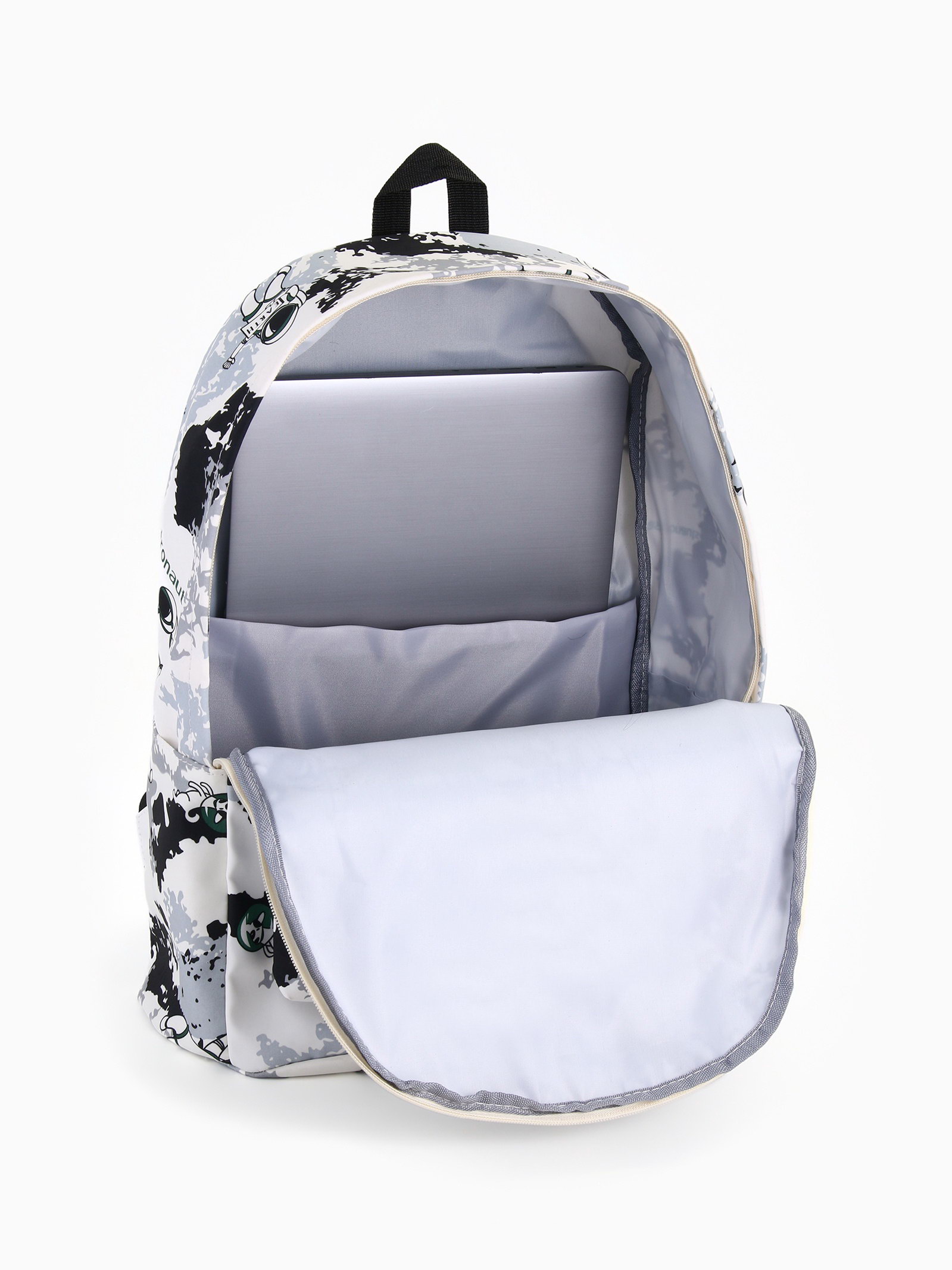 Рюкзак школьный на молнии, с карманами, с принтом, размер 30x17x43 см, белый/серый, 17x30x43 см., Китай