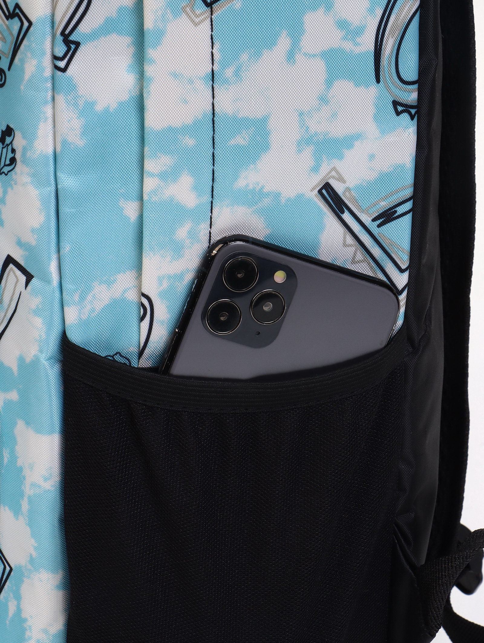 Рюкзак школьный на молнии, с карманами, с принтом, размер 30x13x42 см, голубой, 13x30x42 см., Китай