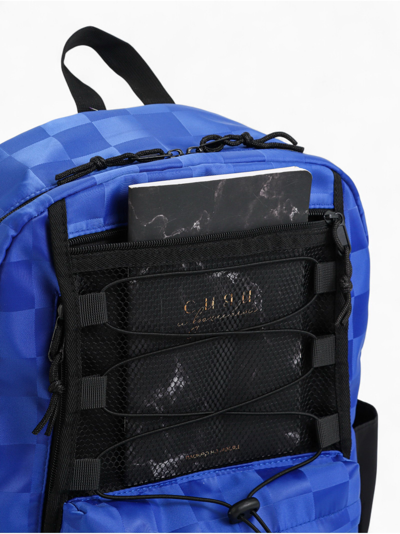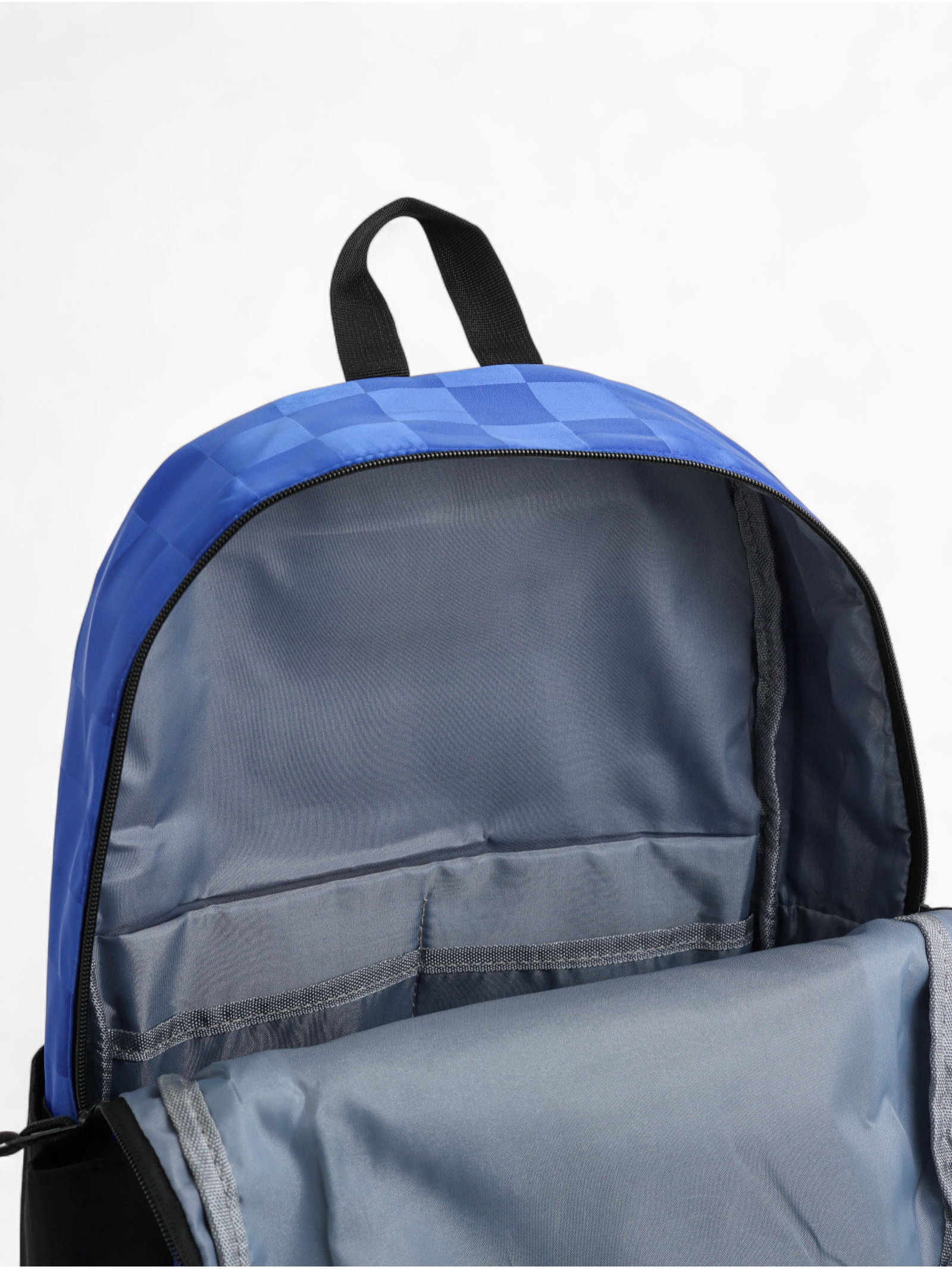 Рюкзак молодёжный на молнии, с карманами, в клетку, размер 31x17x42 см, с принтом, синий, 17x31x42 см., Китай