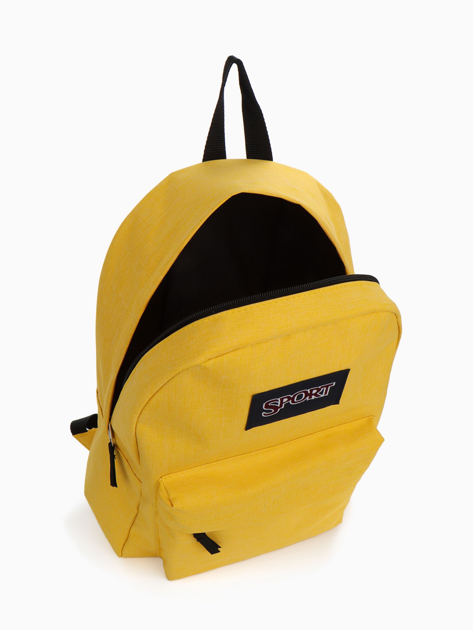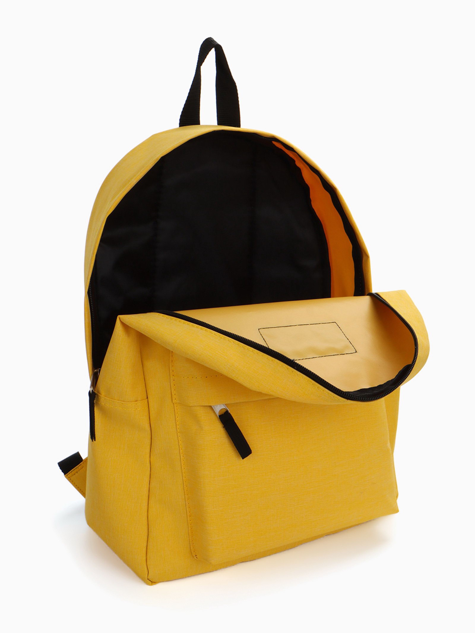 Рюкзак школьный на молнии, с карманом, однотонный, размер 30x14x41 см, жёлтый, 14x30x41 см., Китай