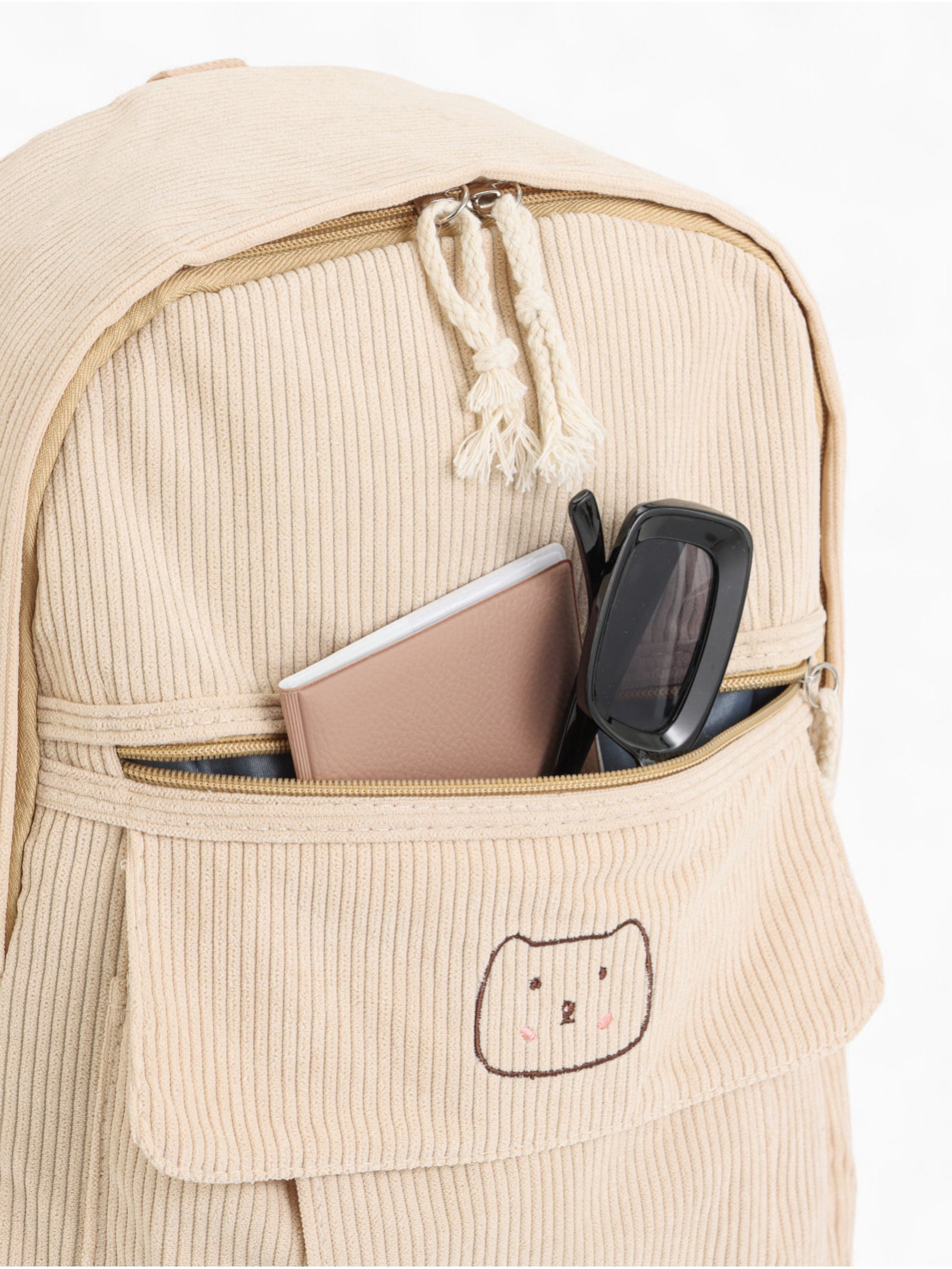 Рюкзак школьный на молнии, с карманами, однотонный, размер 29x13x38 см, бежевый, 13x29x38 см., Китай