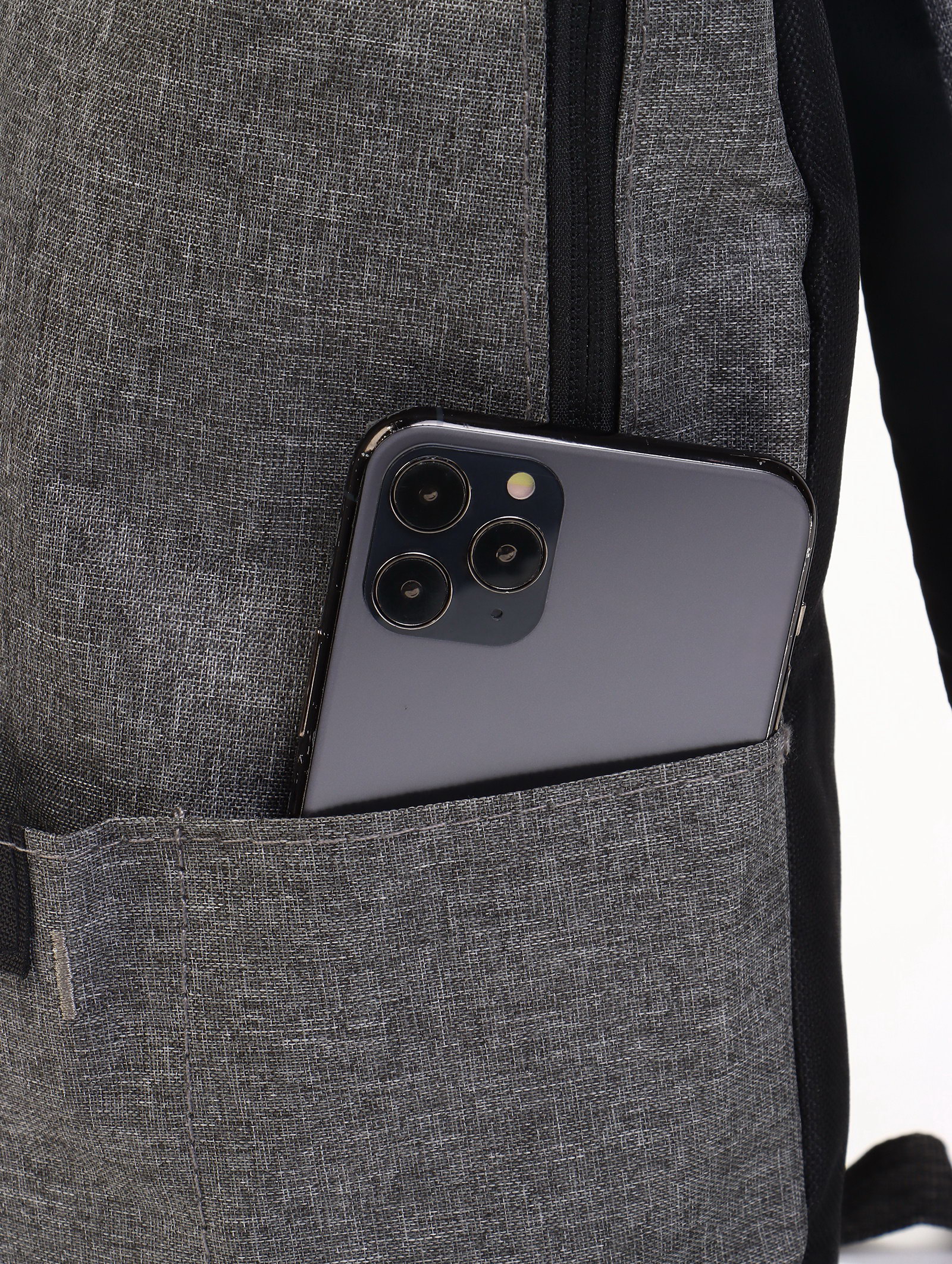 Рюкзак молодёжный на молнии, водонепроницаемый, с карманами, размер 22x12x35 см, серый, 12x22x35 см., Китай